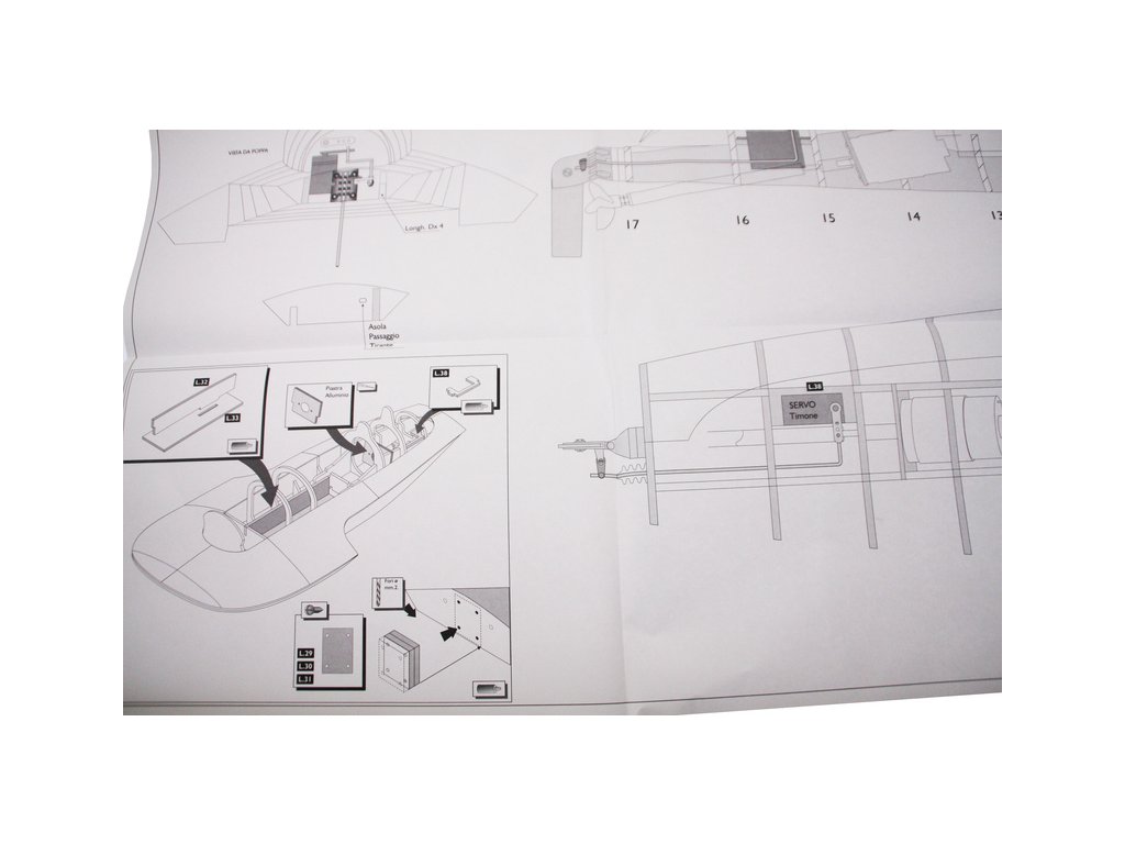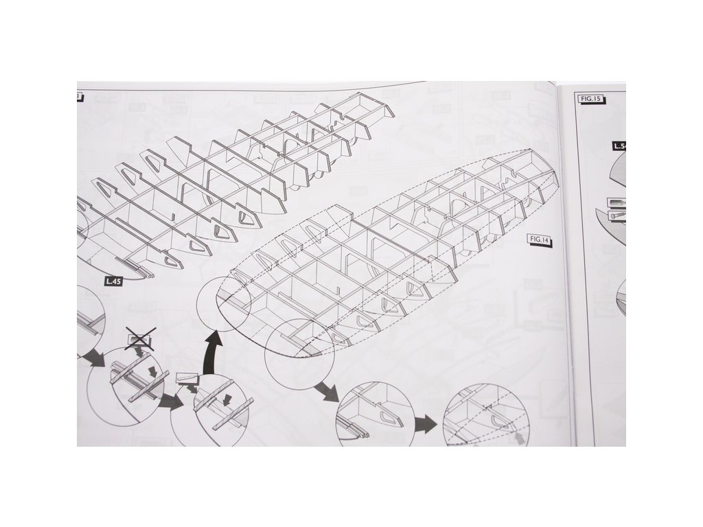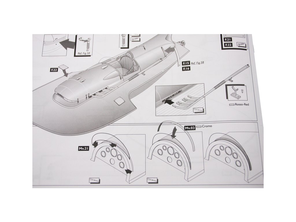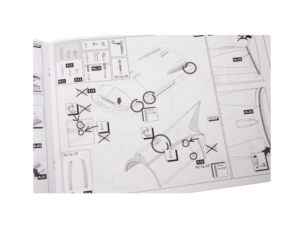 Set obsahuje kompletní sadu výkresové dokumentace modelu v měřítku 1:1 s obrázky jednotlivých detailů. Na výkrese jsou v měřítku nakresleny montážní sestavy a jejich kompletace. Vícejazyčný postup stavby rámcově upravuje logické sestavení jednotlivých komponentů.