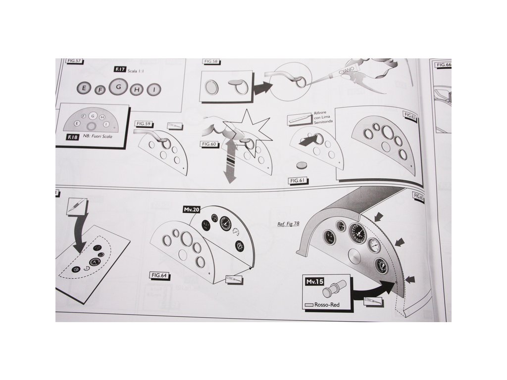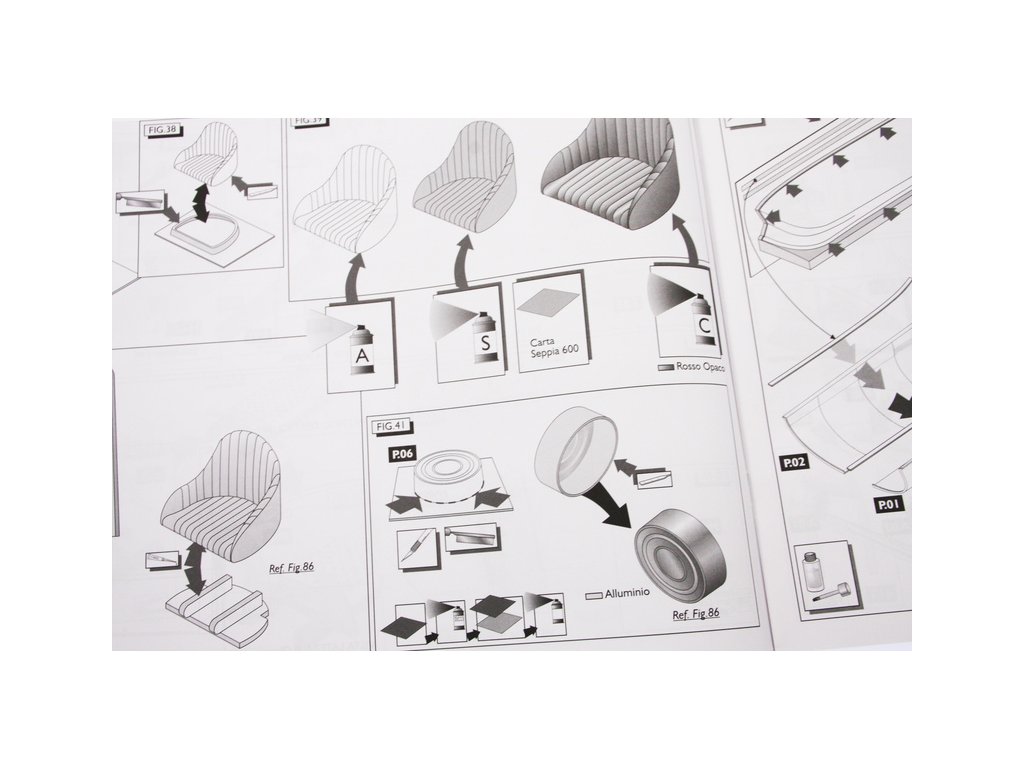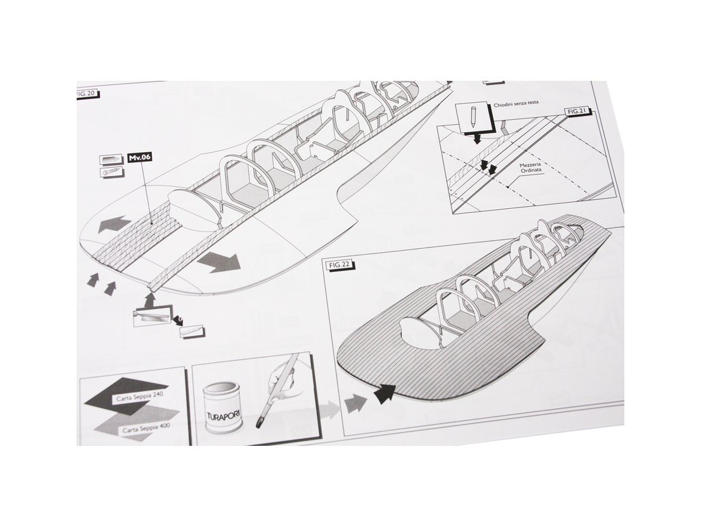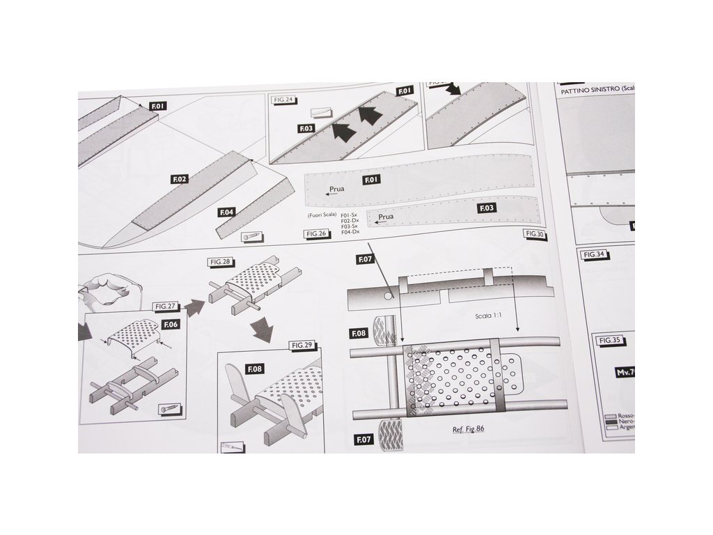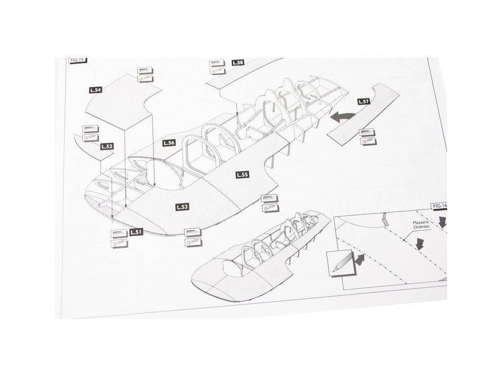 Set obsahuje kompletní sadu výkresové dokumentace modelu v měřítku 1:1 s obrázky jednotlivých detailů. Na výkrese jsou v měřítku nakresleny montážní sestavy a jejich kompletace. Vícejazyčný postup stavby rámcově upravuje logické sestavení jednotlivých komponentů.