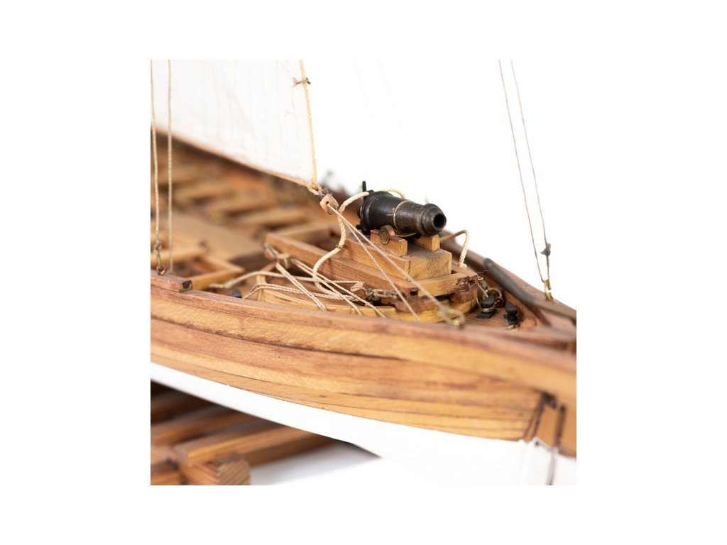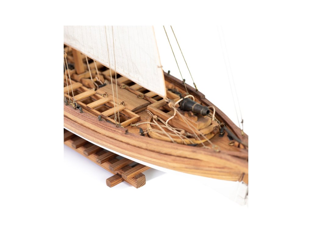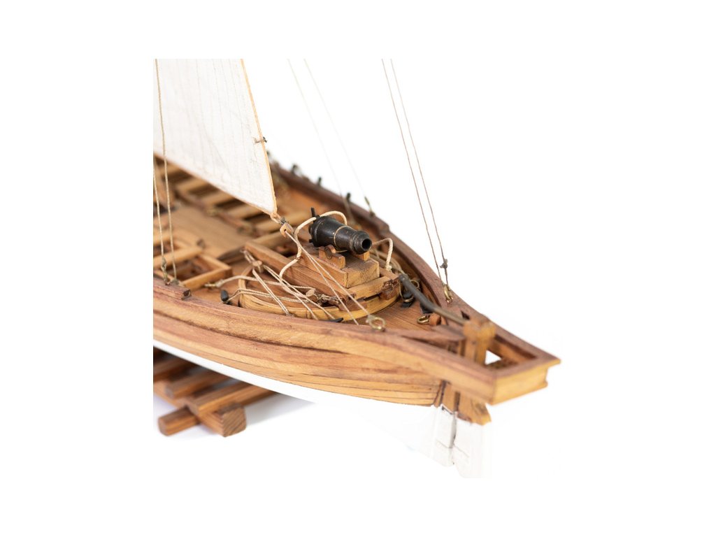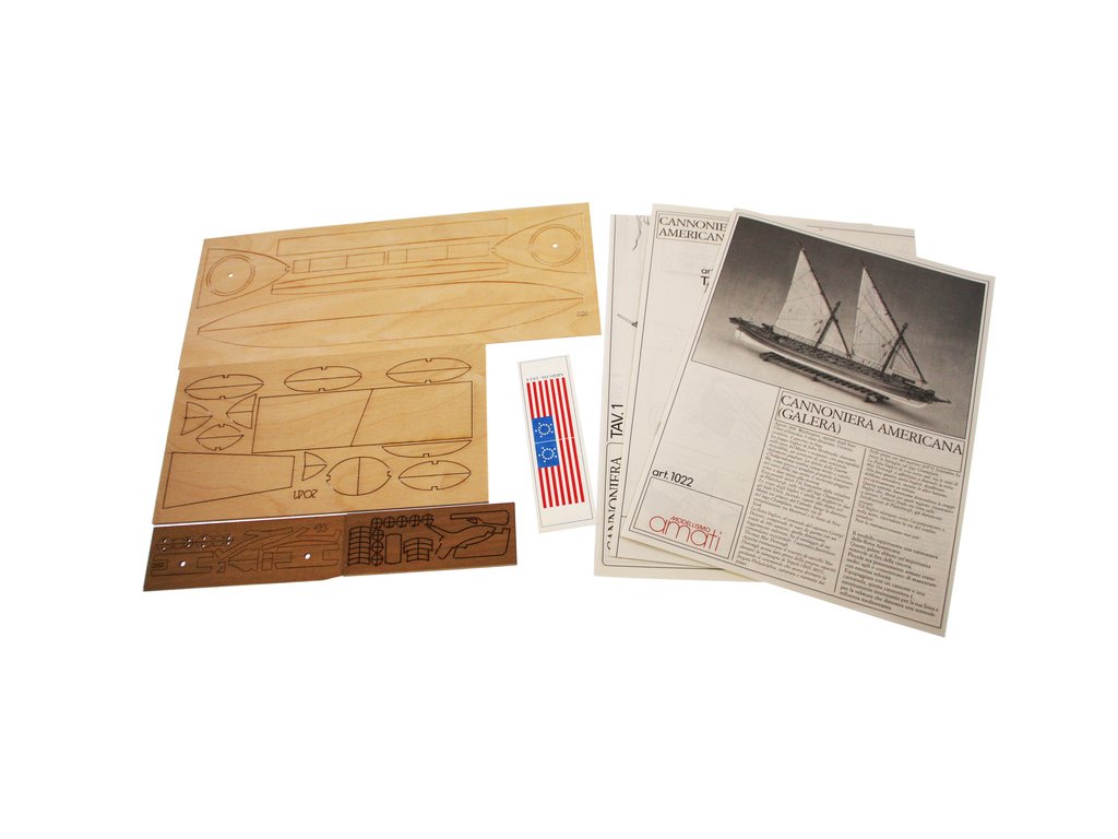 Stavebnice statické makety historické lodi AMATI Arrow bitevní loď 1814 1:55 kit. Šlo o dělový plachetní člun. Set obsahuje všechny součásti potřebné ke stavbě tohoto výjimečného modelu. Dřevěné díly jsou řezány laserem.Obsaženy jsou rovněž plachty a vlajky. Set je doplněn mnoha detailními ilustracemi.