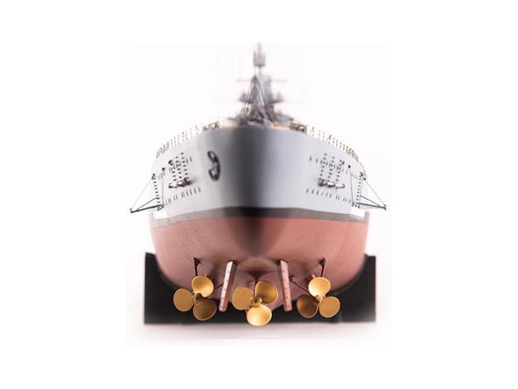 Maketa německé válečné lodi Bismark z roku 1939 v měřítku 1:200 o délce 1250mm od AMATI, je stavebnicí v rozsypu (kit) pro náročné modeláře. Bismarck je pravděpodobně nejznámější bitevní loď německého námořnictva. Laserem řezané dřevěné díly, 2266 leptaných dílů a mnoho odlitků.