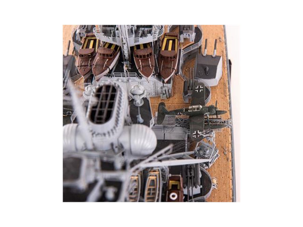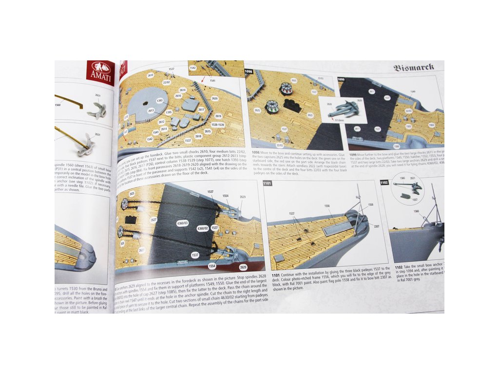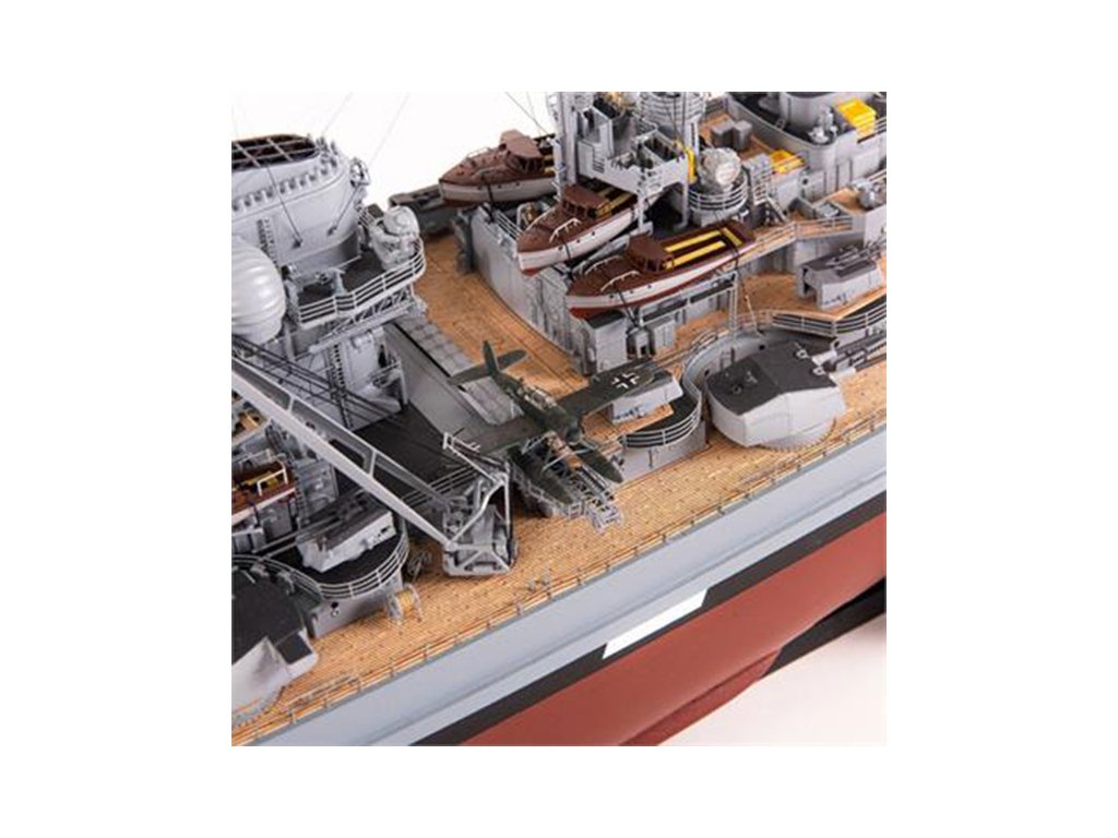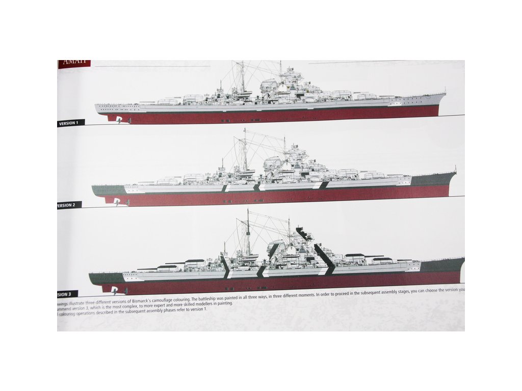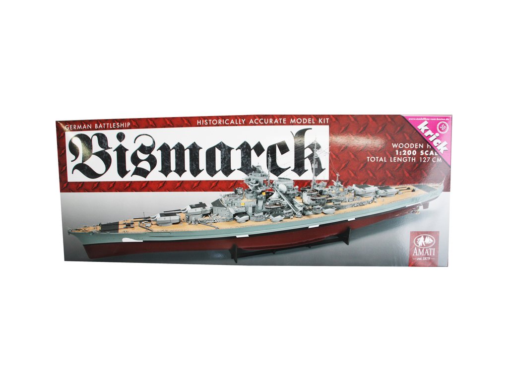 Bismarck je pravděpodobně nejznámější bitevní loď německého námořnictva. V době svého uvedení do provozu v roce 1940 byla považována za největší a nejmocnější válečnou loď na světě. Spolu se svou sesterskou lodí Tirpitz vytvořila tzv. Třídu Bismarck. Jejím kapitánem byl Ernst Lindemann. V květnu 1941 se vydal na svoji první a poslední plavbu do Atlantiku, byl vážně poškozen torpédovými bombardéry Swordfish z letadlové lodě HMS Ark Royal a potom potopen 27. května bitevními loděmi HMS Rodney, HMS King George V a dalšími plavidly. Amati má mnohaleté zkušenosti s modelem Bismarck, v této verzi se podařilo výrazně vylepšit konstrukci s ještě podrobnějšími detaily. Díky odnímacím palubám a prostornému trupu lze model připravit i na vodu jako funkční RC model.