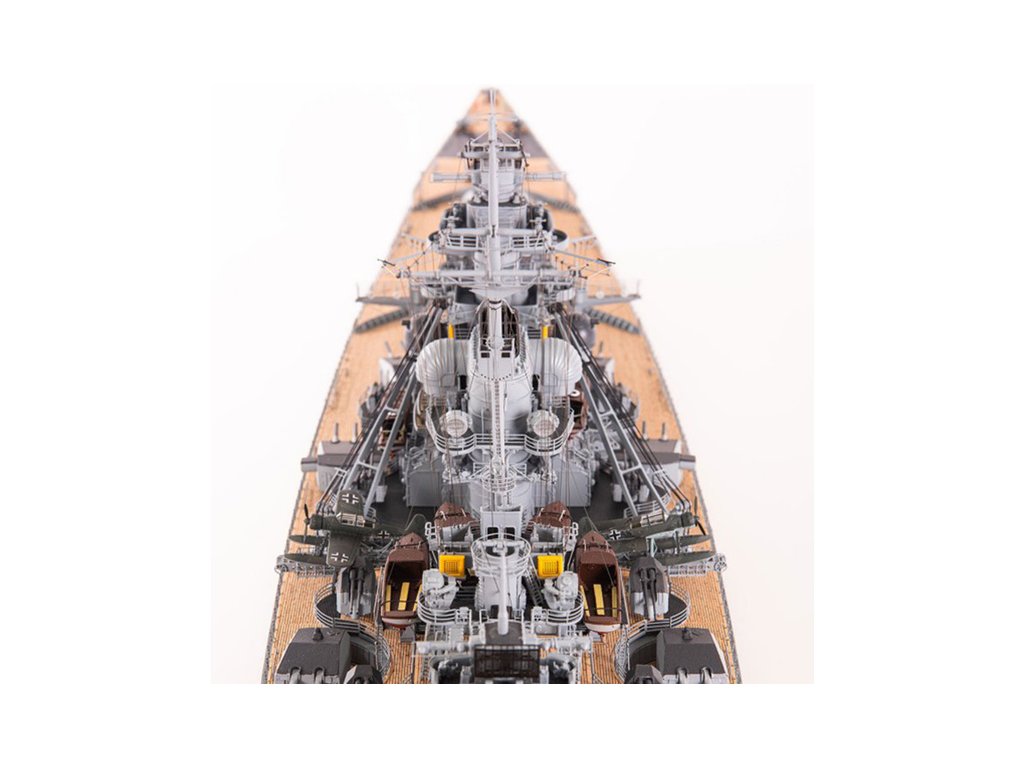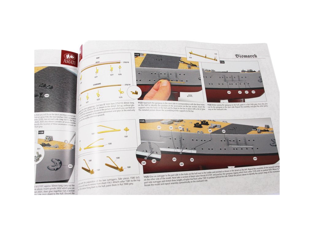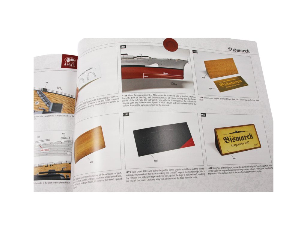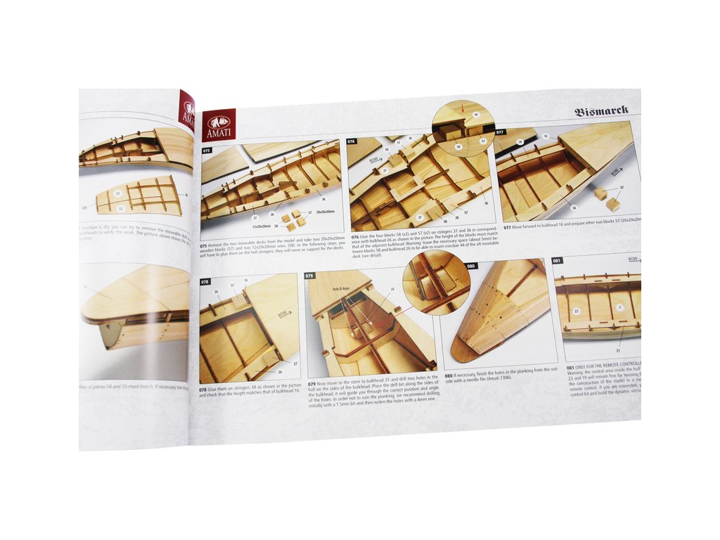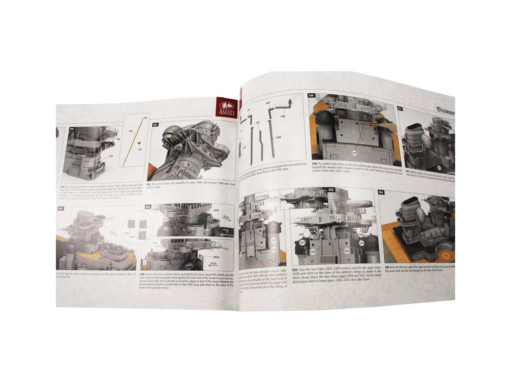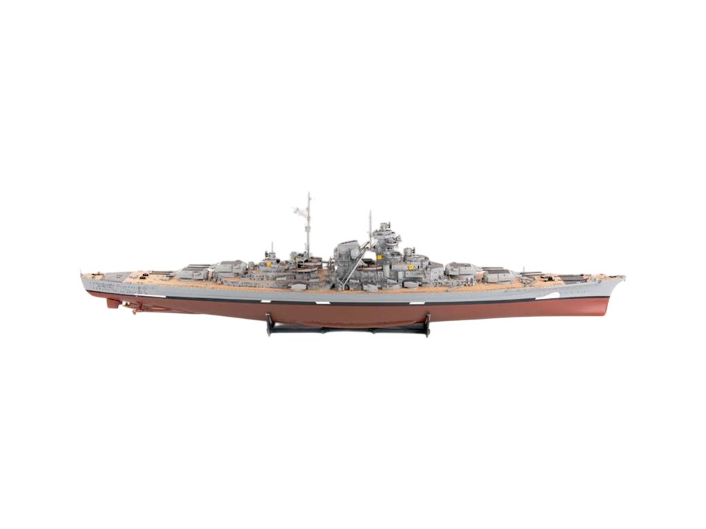 Bismarck je pravděpodobně nejznámější bitevní loď německého námořnictva. V době svého uvedení do provozu v roce 1940 byla považována za největší a nejmocnější válečnou loď na světě. Spolu se svou sesterskou lodí Tirpitz vytvořila tzv. Třídu Bismarck. Jejím kapitánem byl Ernst Lindemann. V květnu 1941 se vydal na svoji první a poslední plavbu do Atlantiku, byl vážně poškozen torpédovými bombardéry Swordfish z letadlové lodě HMS Ark Royal a potom potopen 27. května bitevními loděmi HMS Rodney, HMS King George V a dalšími plavidly. Amati má mnohaleté zkušenosti s modelem Bismarck, v této verzi se podařilo výrazně vylepšit konstrukci s ještě podrobnějšími detaily. Díky odnímacím palubám a prostornému trupu lze model připravit i na vodu jako funkční RC model.