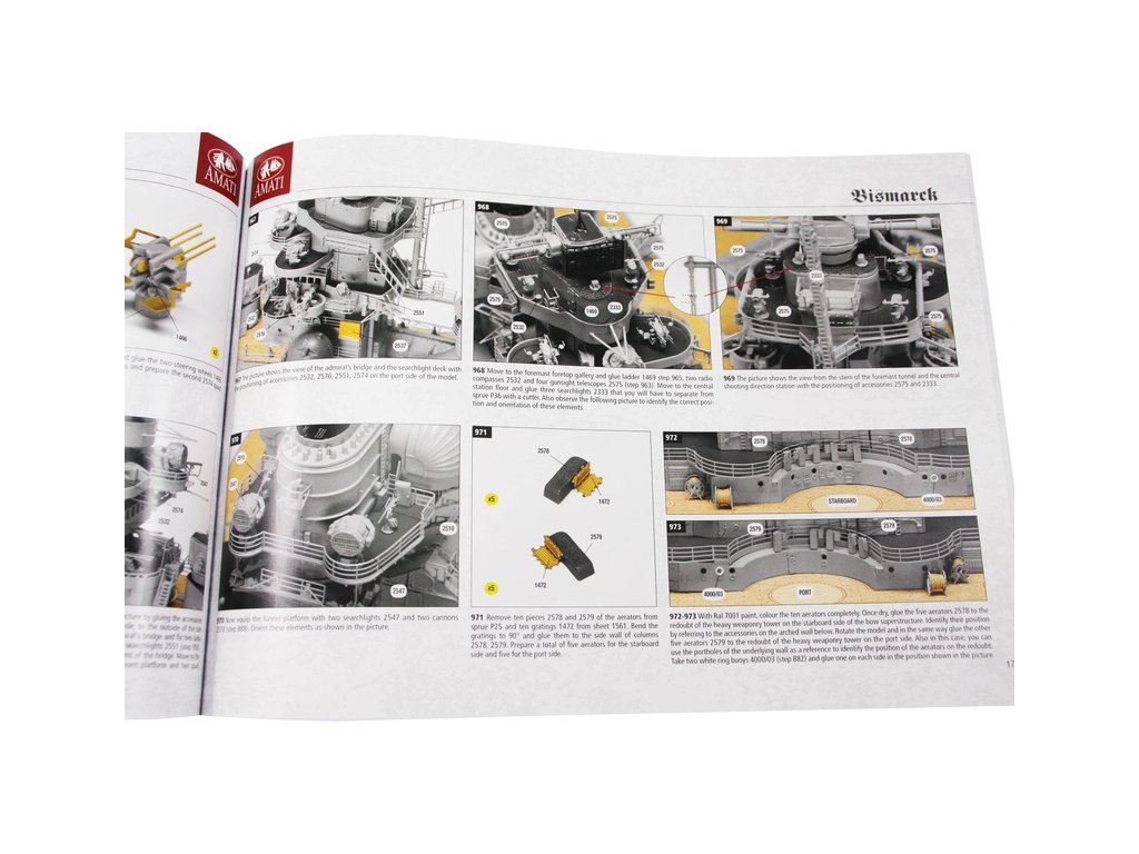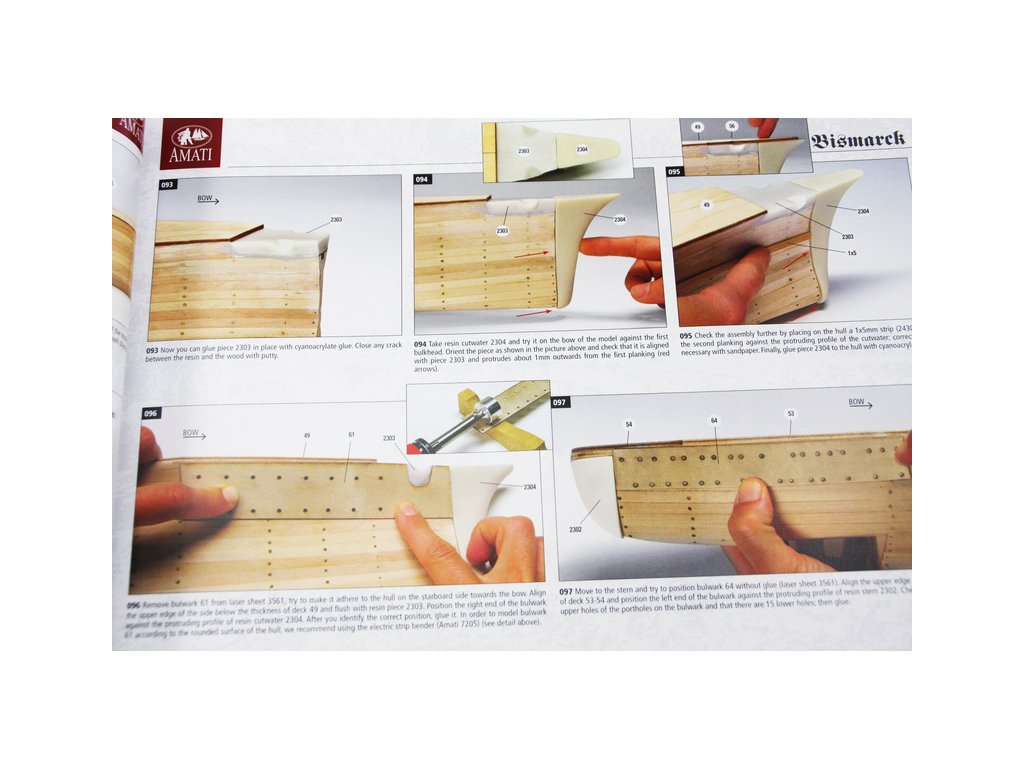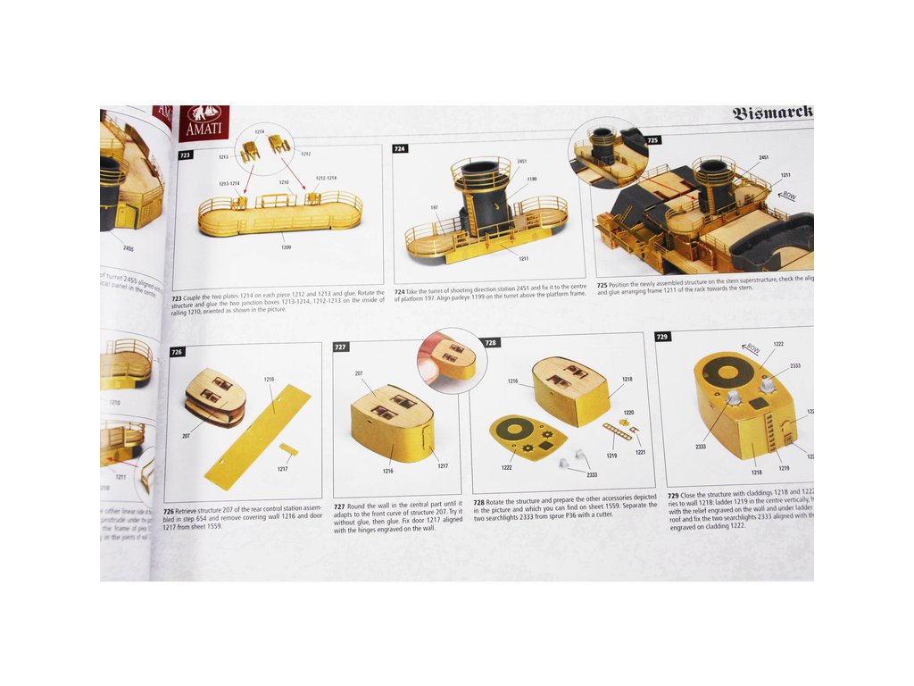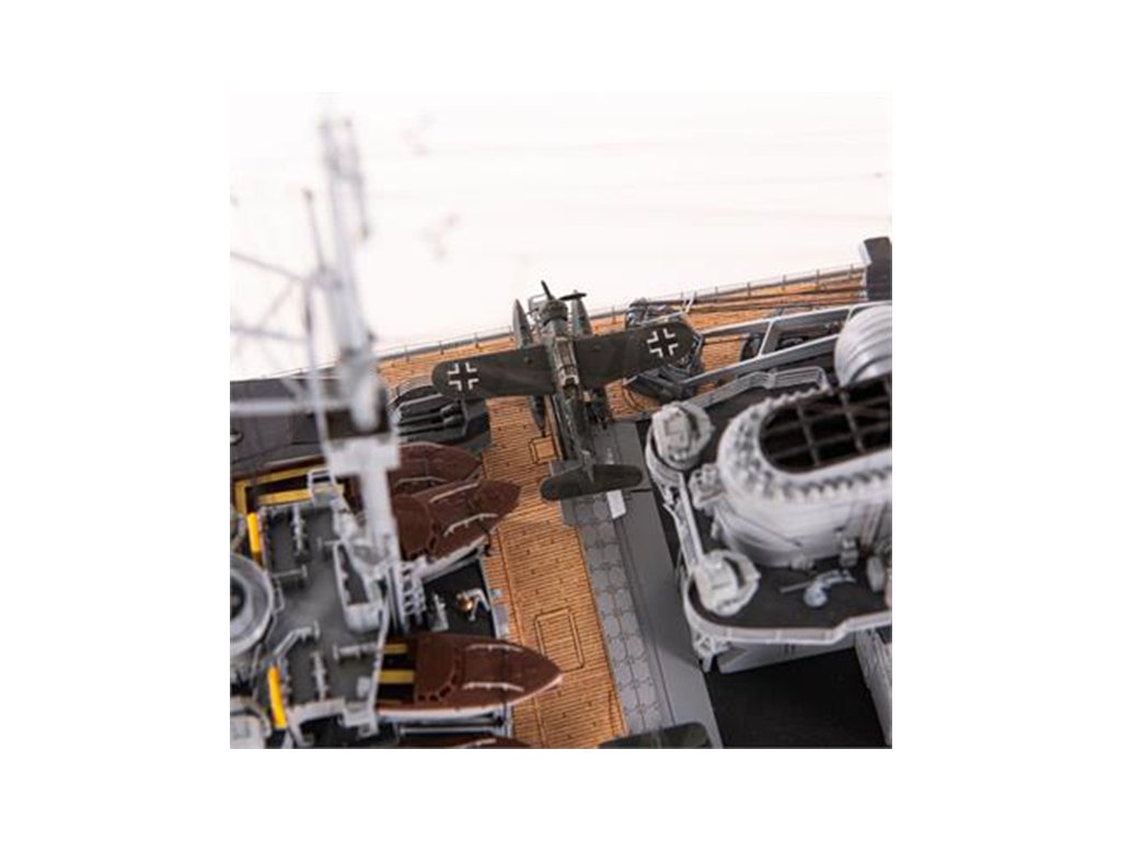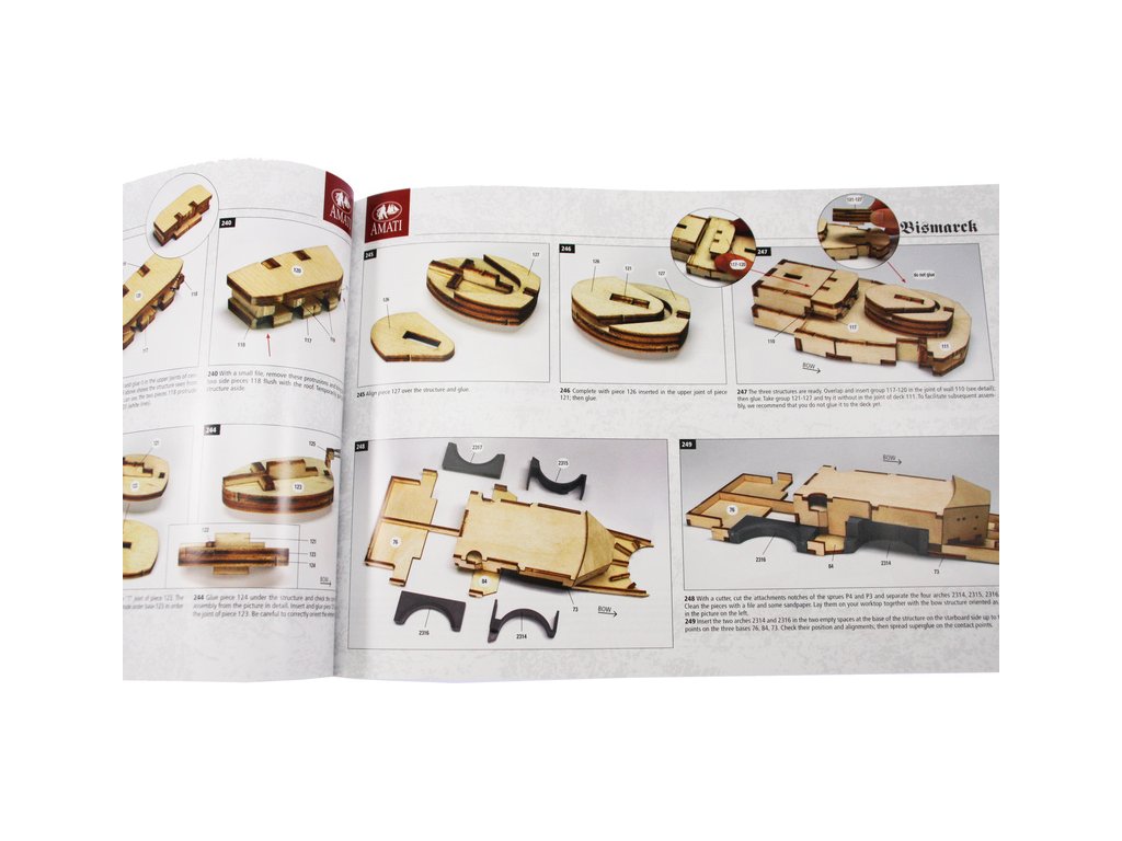 Bismarck je pravděpodobně nejznámější bitevní loď německého námořnictva. V době svého uvedení do provozu v roce 1940 byla považována za největší a nejmocnější válečnou loď na světě. Spolu se svou sesterskou lodí Tirpitz vytvořila tzv. Třídu Bismarck. Jejím kapitánem byl Ernst Lindemann. V květnu 1941 se vydal na svoji první a poslední plavbu do Atlantiku, byl vážně poškozen torpédovými bombardéry Swordfish z letadlové lodě HMS Ark Royal a potom potopen 27. května bitevními loděmi HMS Rodney, HMS King George V a dalšími plavidly. Amati má mnohaleté zkušenosti s modelem Bismarck, v této verzi se podařilo výrazně vylepšit konstrukci s ještě podrobnějšími detaily. Díky odnímacím palubám a prostornému trupu lze model připravit i na vodu jako funkční RC model.