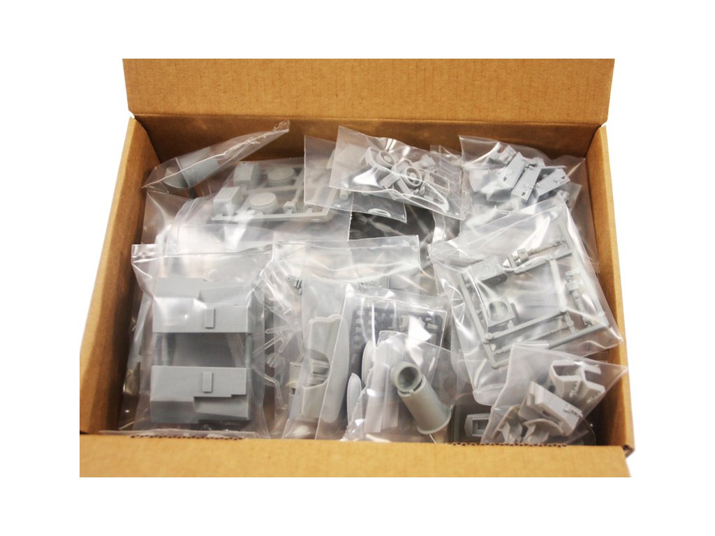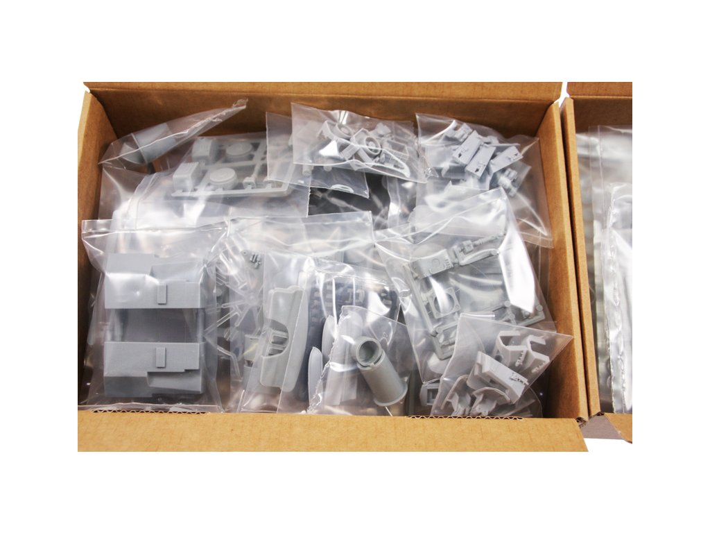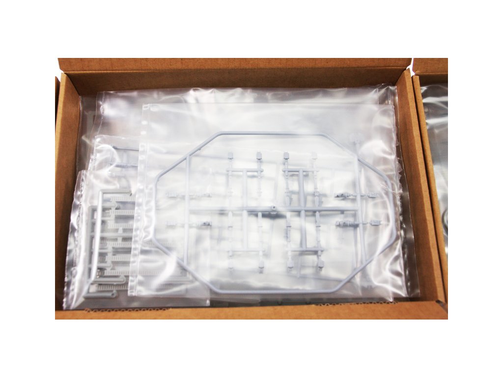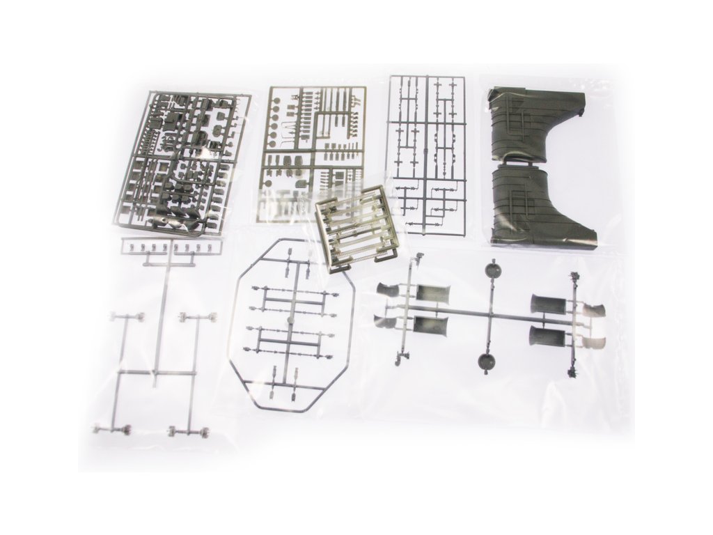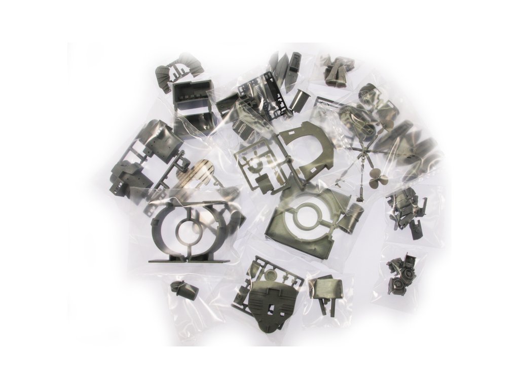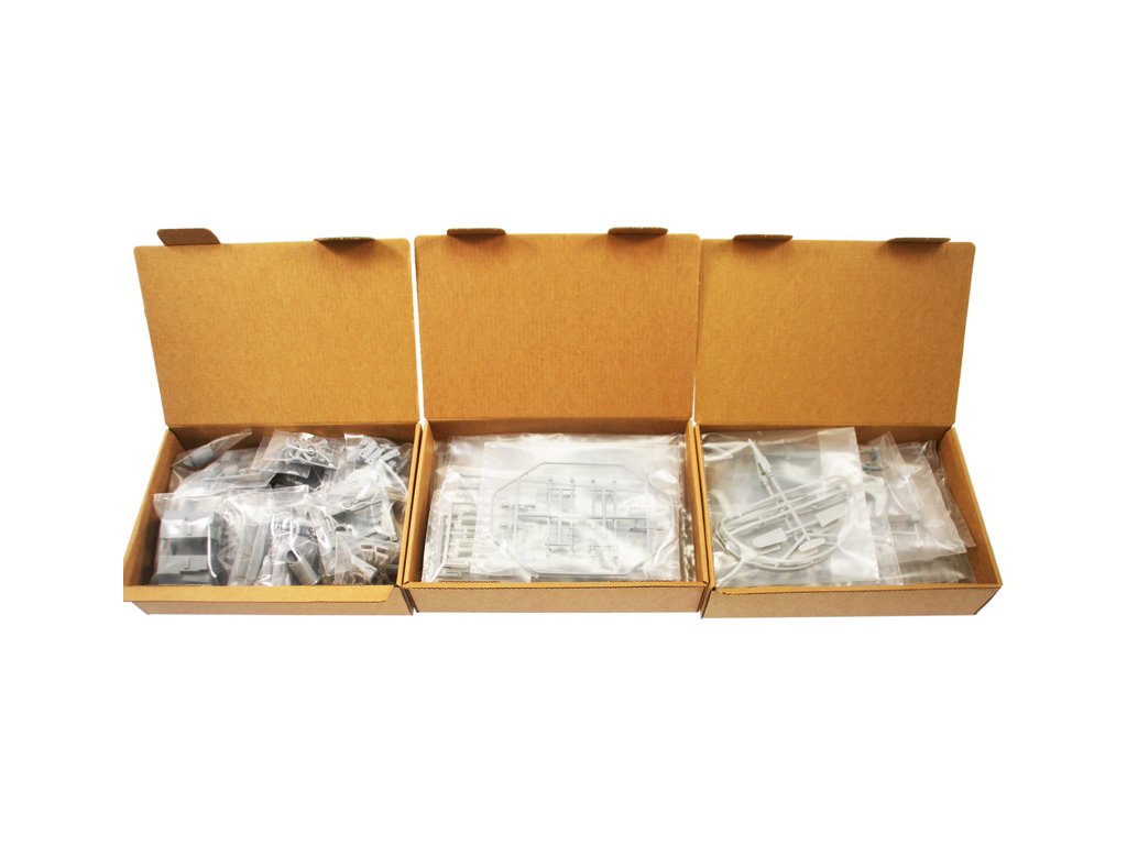 Po otevření víka krabice naleznete dřevěné díly modelu z překližky, sadu lišt, mosazné a kovové součásti, plastové výlisky v sáčcích, sadu výkresů, velmi obsáhlý obrazový barevný návod a manuál.