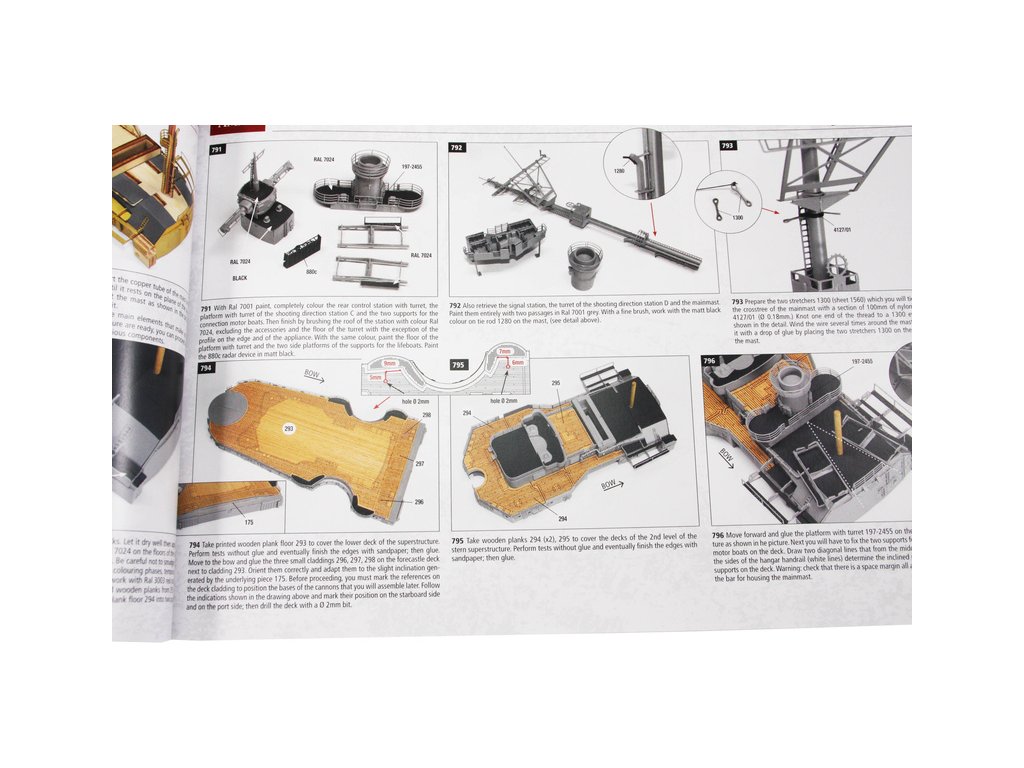 Set obsahuje kompletní sadu výkresové dokumentace modelu v měřítku 1:1 s obrázky jednotlivých detailů. Na výkrese jsou v měřítku nakresleny montážní sestavy, jejich kompletace a to včetně stěžňů a ráhen a způsob vázání lanoví. Vícejazyčný postup stavby rámcově upravuje logické sestavení jednotlivých komponentů.