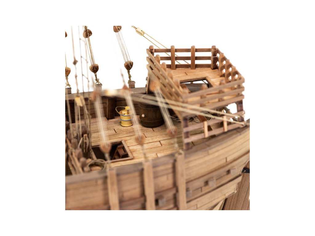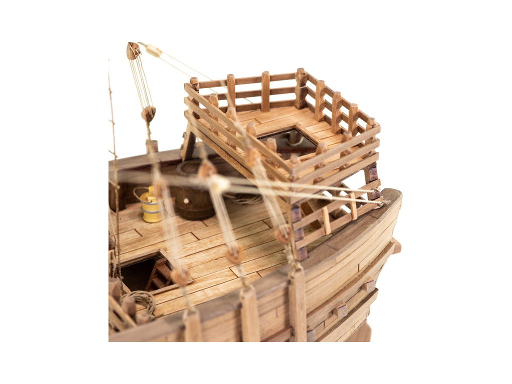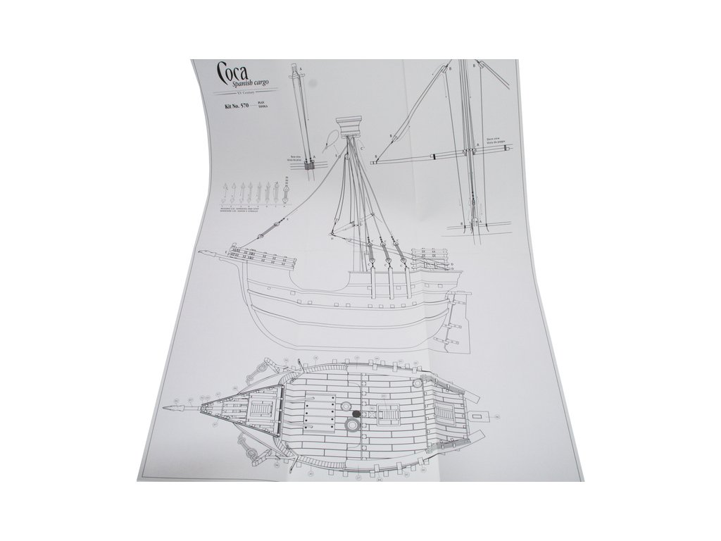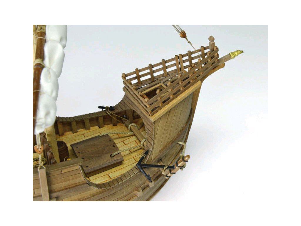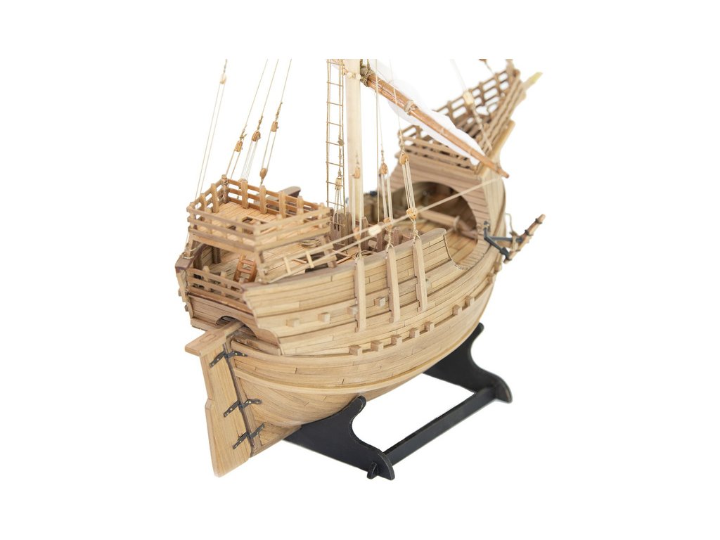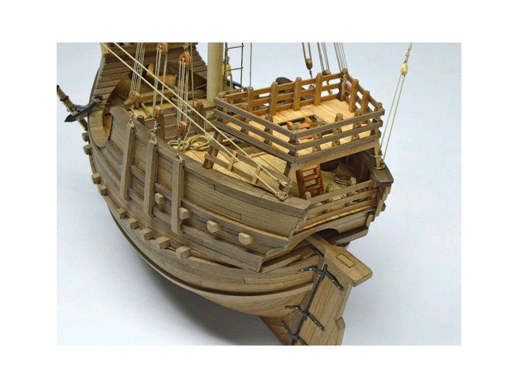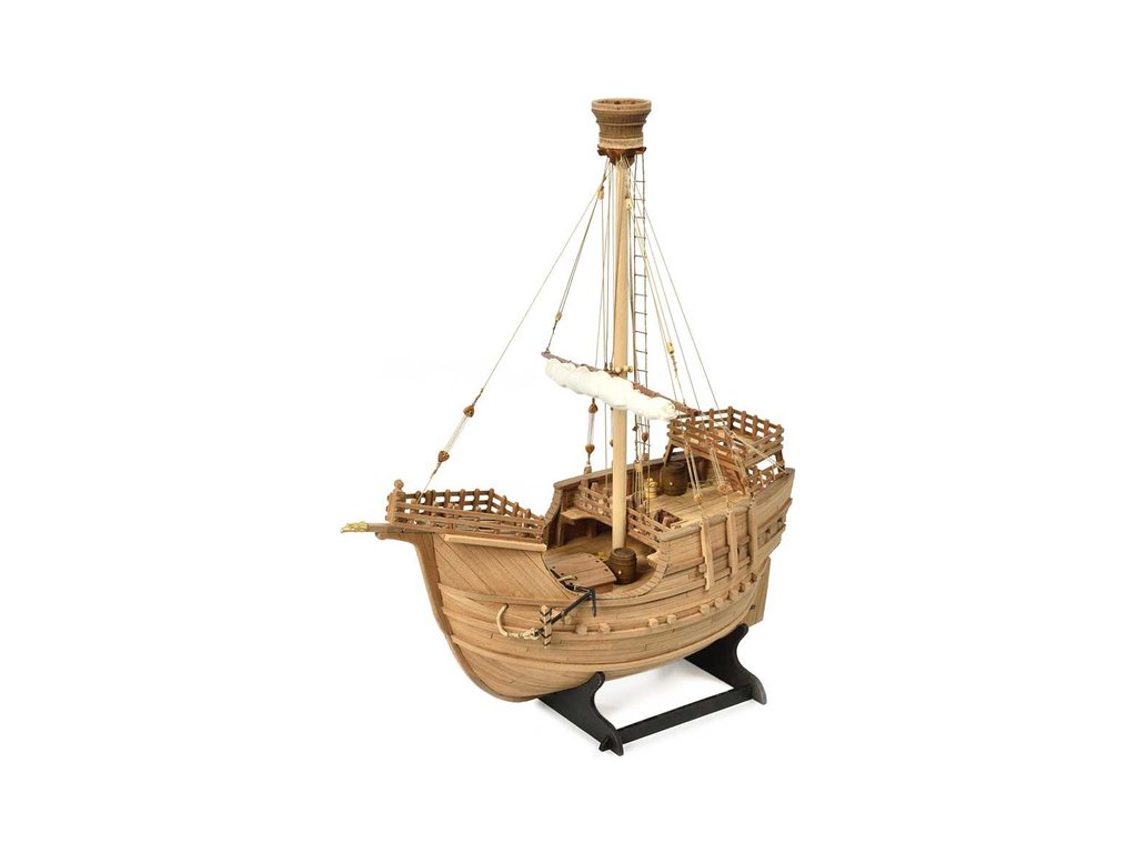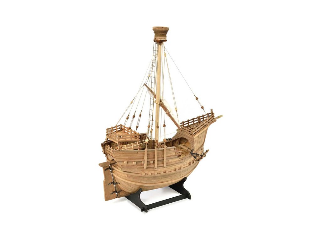 Stavebnice statické makety lodi, AMATI Coca - Karacke 15. století 1:60 kit. Byly používány v 15. století jako obchodní lodě. Typickým znakem byly dvě nástavby, ze kterých se posádky mohly bránit proti pirátským útokům. Z vyhlídky na vrcholku stožáru se pozorovalo okolního moře. Dřevěné díly jako kýl a obšívka jsou řezány laserem, obsahuje plachty, příslušenství a plány.