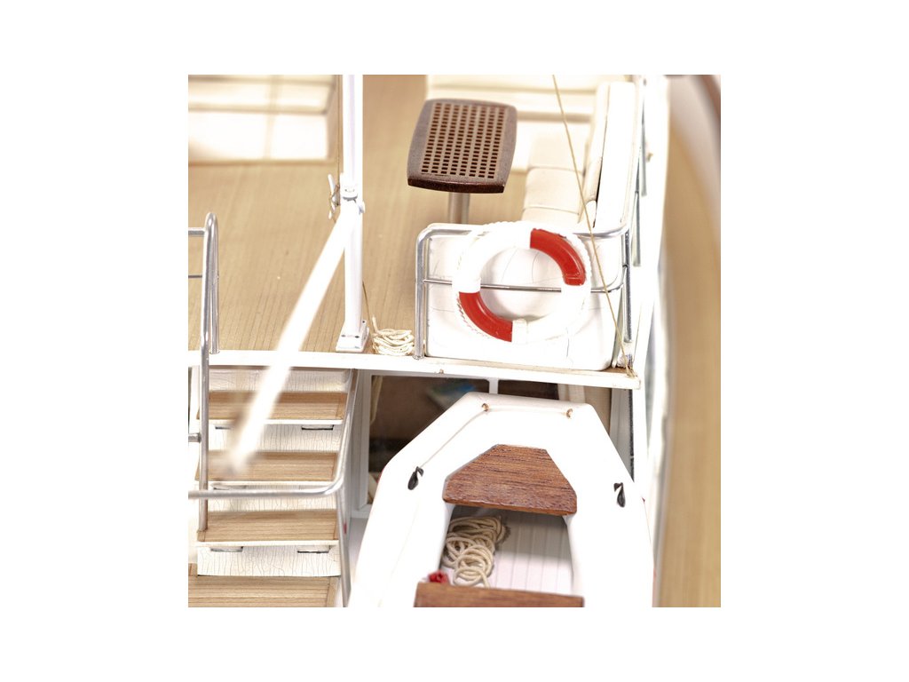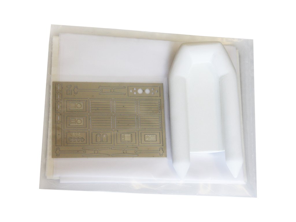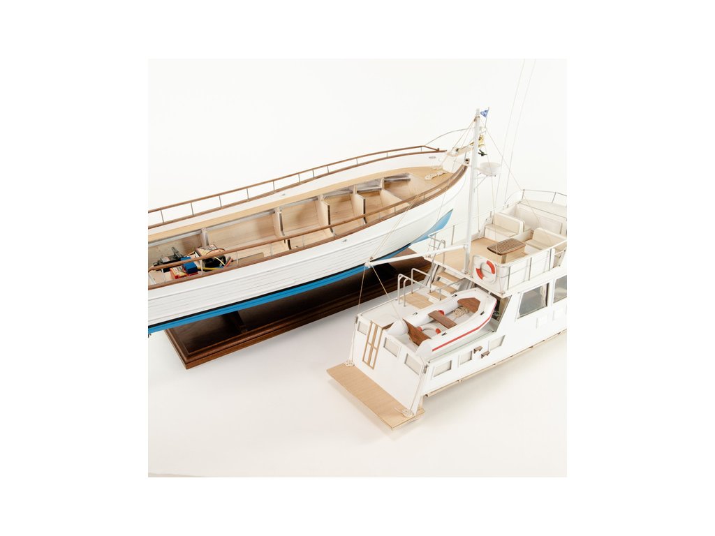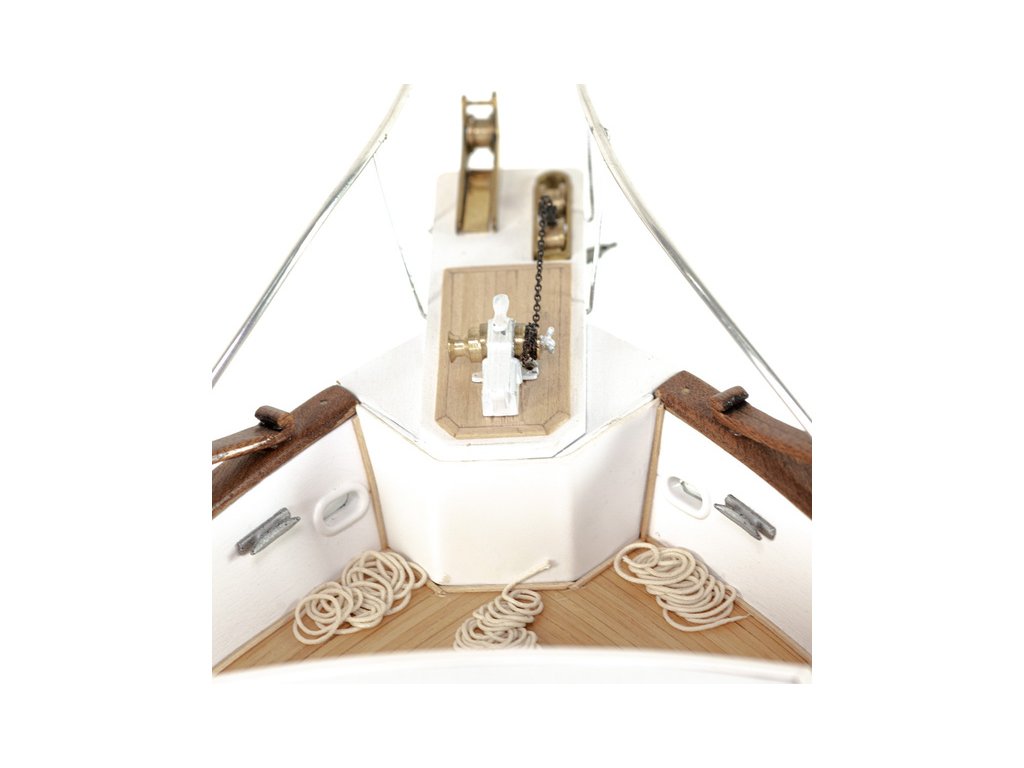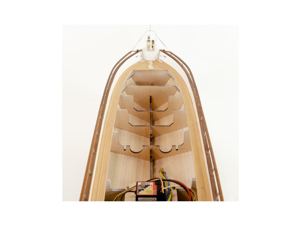 Balení obsahuje sadu desek s překližkovými díly, sadu nosníků, nabarvený laminátový trup, blistry s drobnými díly, model člunu, maketové součásti kabiny, materiál na plachty, drátěné součásti, papírové dekorace, obsáhlá sada výkresů, obrazový manuál.