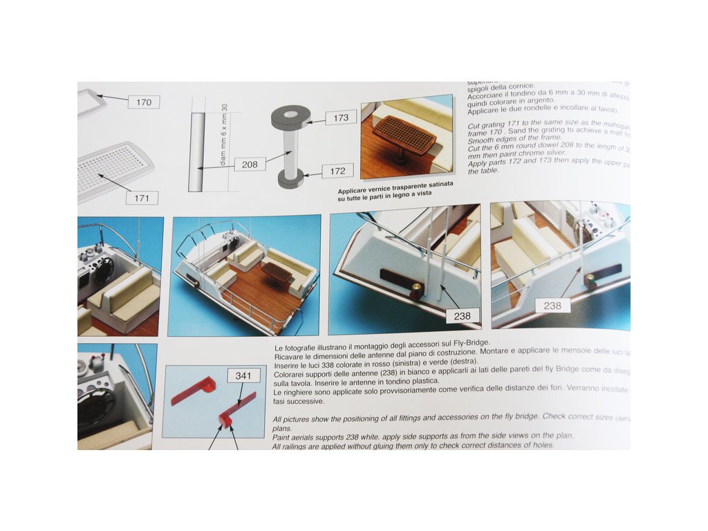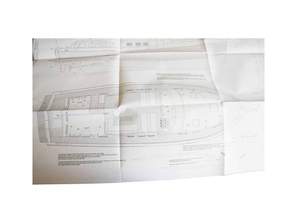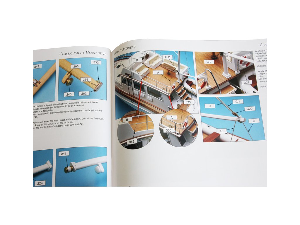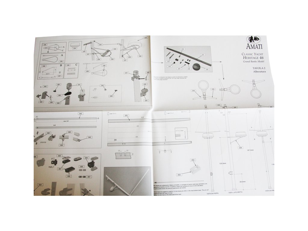 Set obsahuje kompletní sadu výkresové dokumentace modelu v měřítku 1:1 s obrázky jednotlivých detailů. Na výkrese jsou v měřítku nakresleny montážní sestavy, jejich kompletace a to včetně stěžňů a ráhen a způsob vázání lanoví. Vícejazyčný postup stavby rámcově upravuje logické sestavení jednotlivých komponentů.