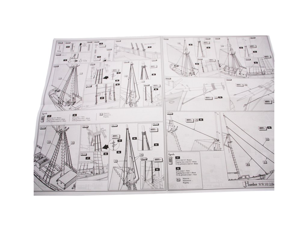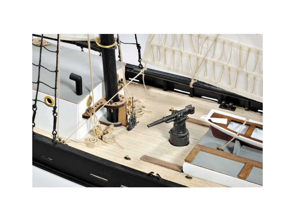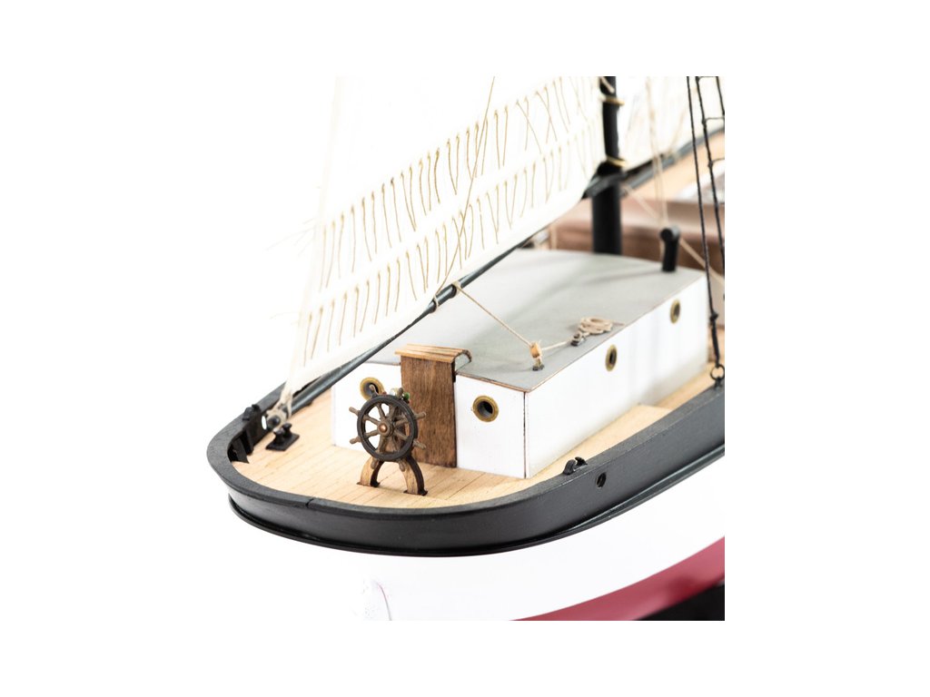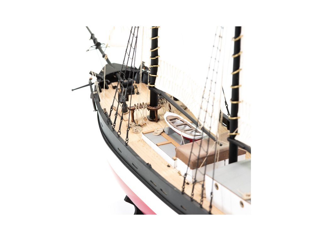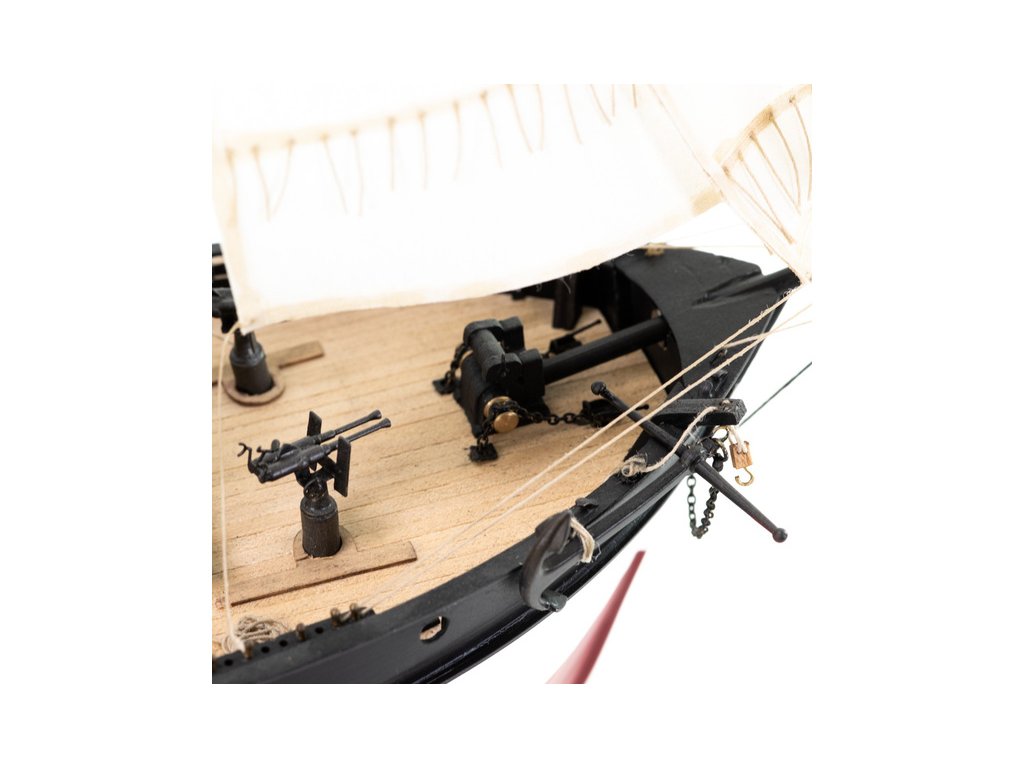 Stavebnice statické makety lodi, H.M.S. Hunter škuner 1:60 kit. Tato obchodní loď patřila britskému obchodnímu loďstvu. Loď byla přestavěna v loděnici Queenstown, Irsko (odtud jméno Q-ship) pro válečné účely. Dřevěné díly jako kýl a obšívka jsou řezány laserem, obsahuje plachty, lanoví, stožáry, kování a plány.