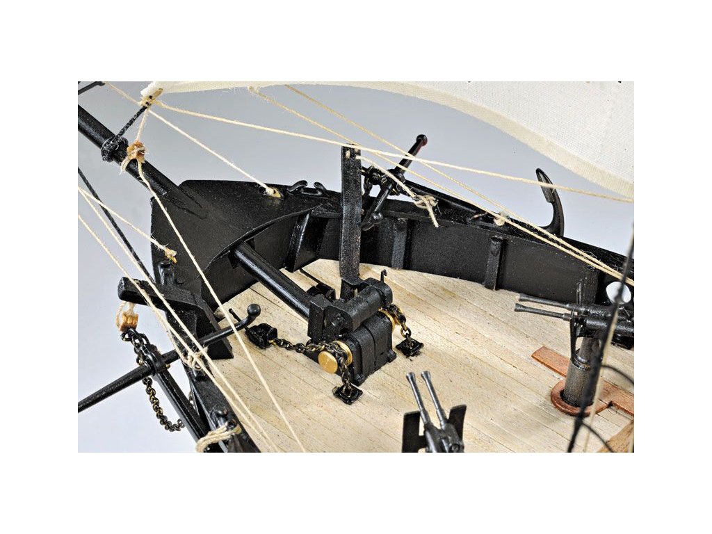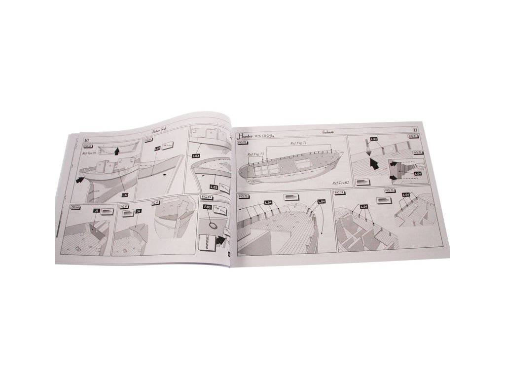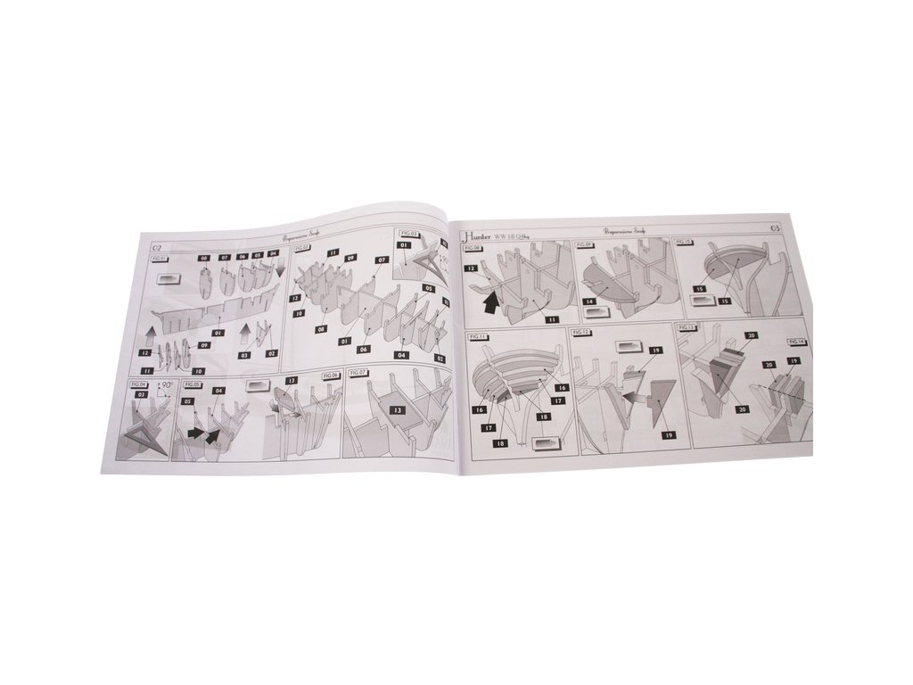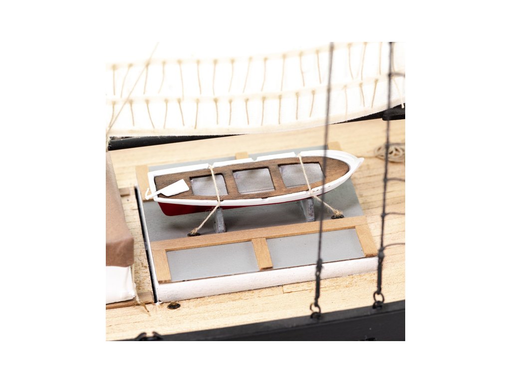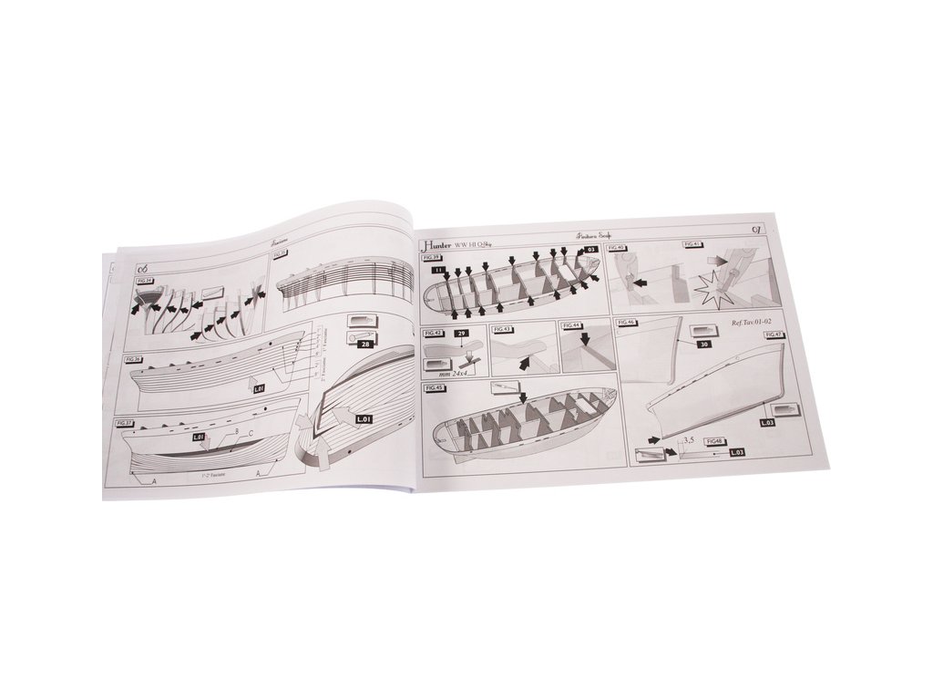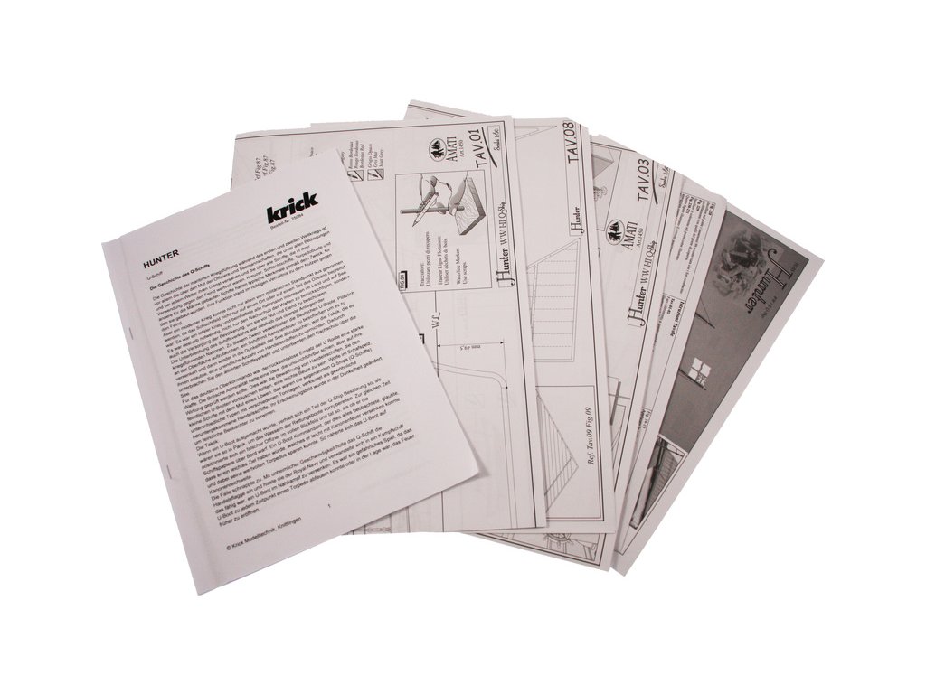 Stavebnice statické makety lodi, H.M.S. Hunter škuner 1:60 kit. Tato obchodní loď patřila britskému obchodnímu loďstvu. Loď byla přestavěna v loděnici Queenstown, Irsko (odtud jméno Q-ship) pro válečné účely. Dřevěné díly jako kýl a obšívka jsou řezány laserem, obsahuje plachty, lanoví, stožáry, kování a plány.