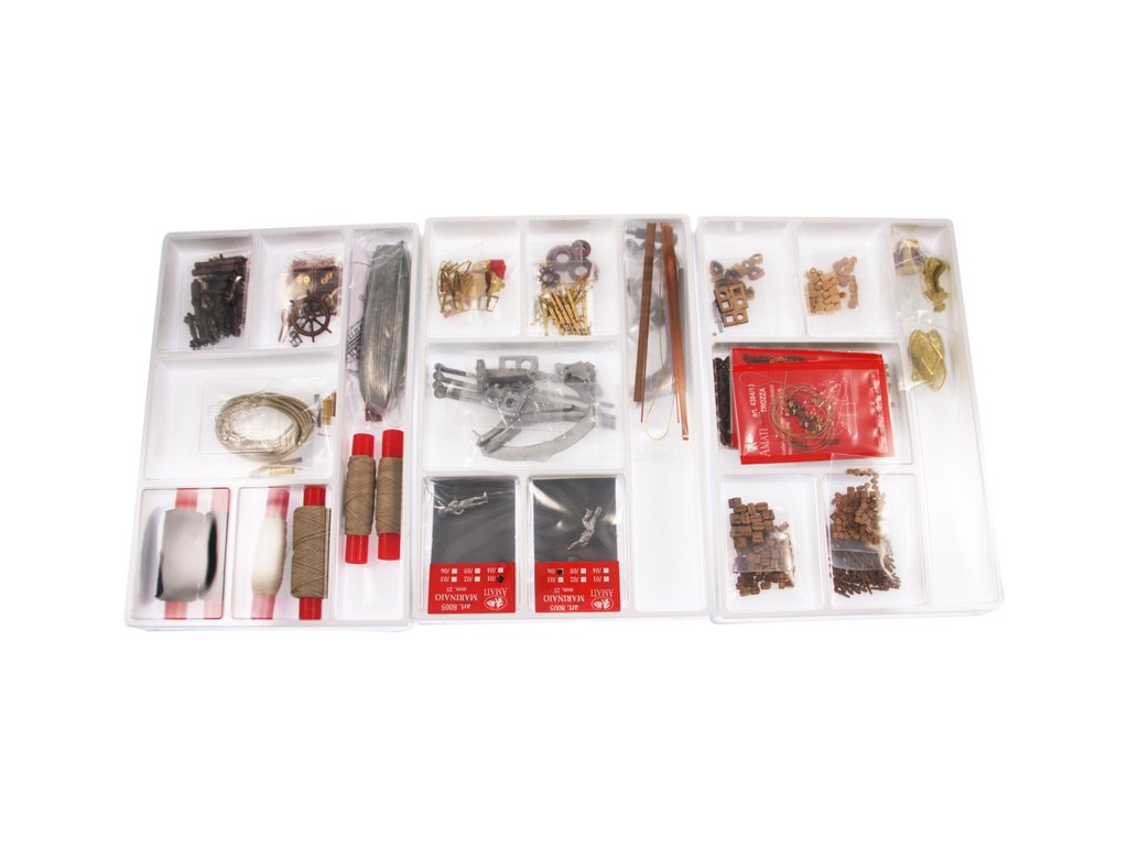 Ke stavbě modelů lodí je nutné vhodné nářadí. Doporučujeme výbornou sadu Modelcraft nářadí pro lodní modeláře (sada 12ks), nebo Modelcraft nářadí pro modeláře (sada 18ks). Dále doporučujeme koupi nylonových svorek a nepostradatelné modelářské špendlíky. Pro úpravu, přesné řezaní, lepení dílů a také jako ochranu stolu doporučujeme modelářskou podložku.