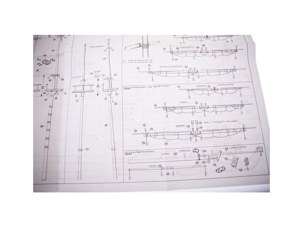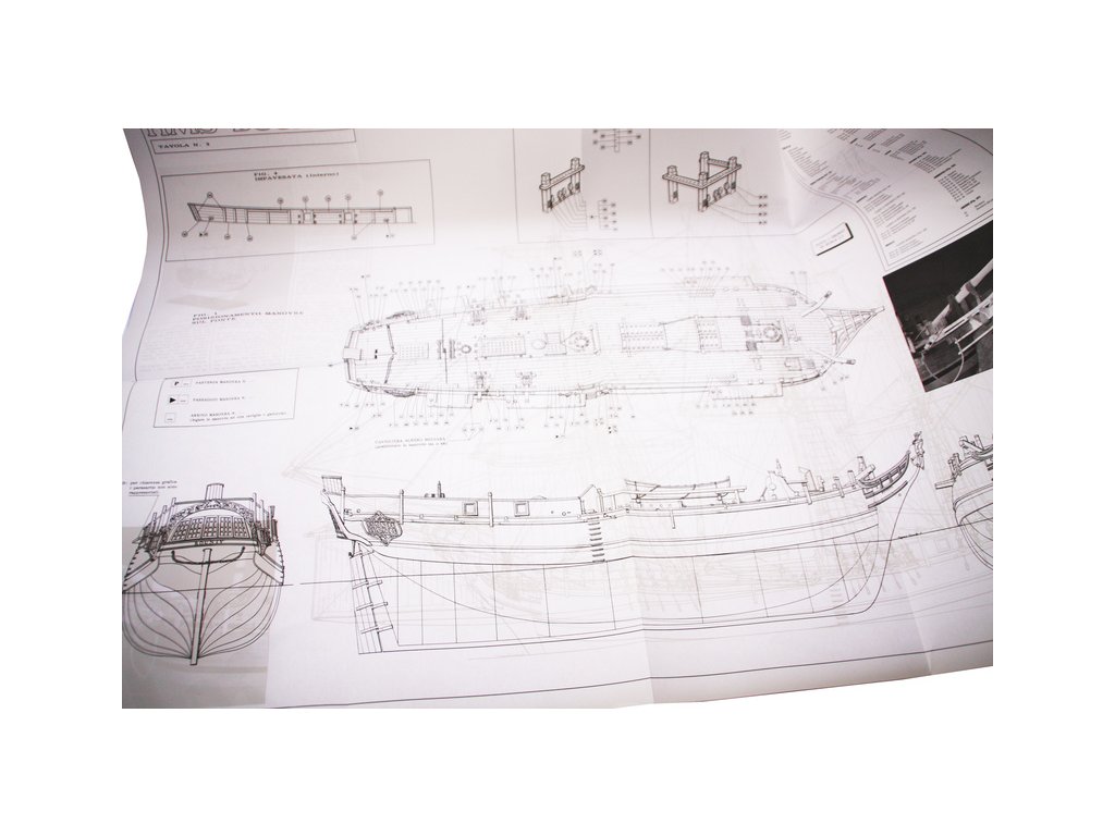 Set obsahuje kompletní sadu výkresové dokumentace modelu v měřítku 1:1 s postupem stavby, na výkrese jsou pečlivě označeny díly a je zde i seznam jednotlivých součástí modelu.