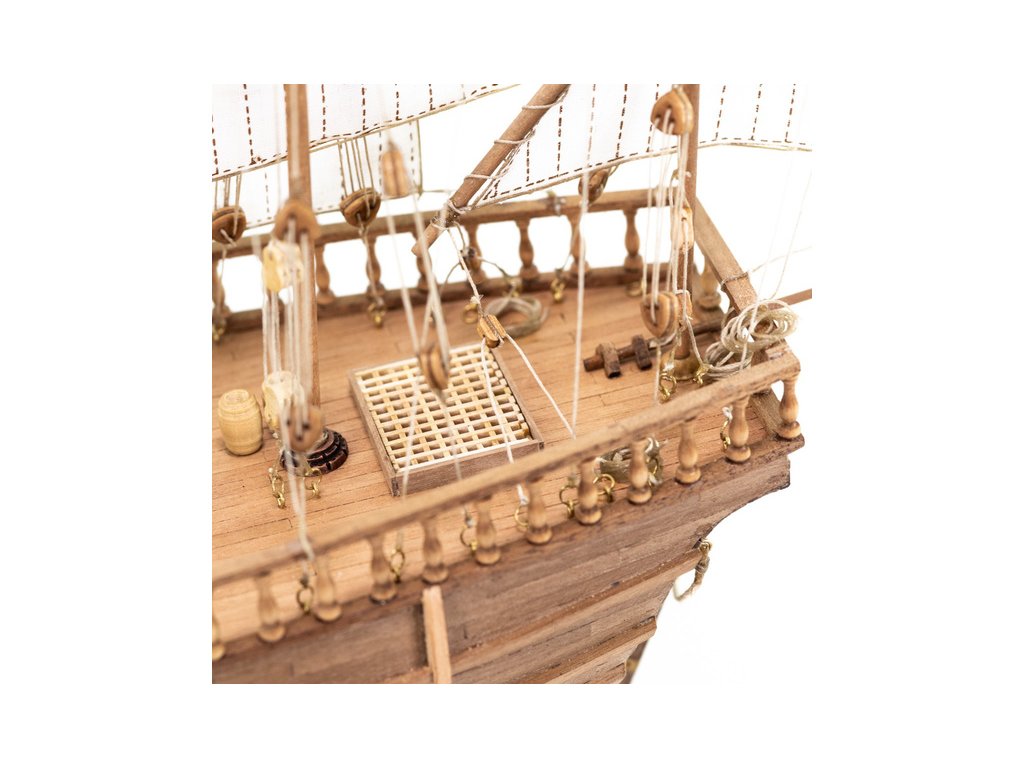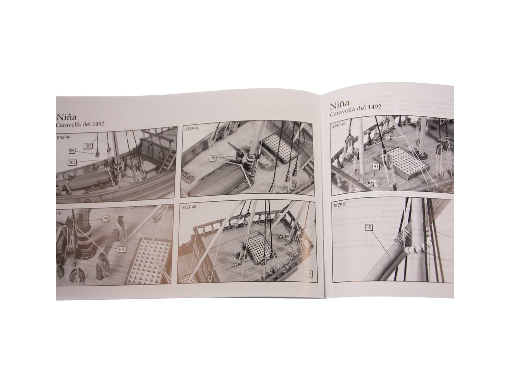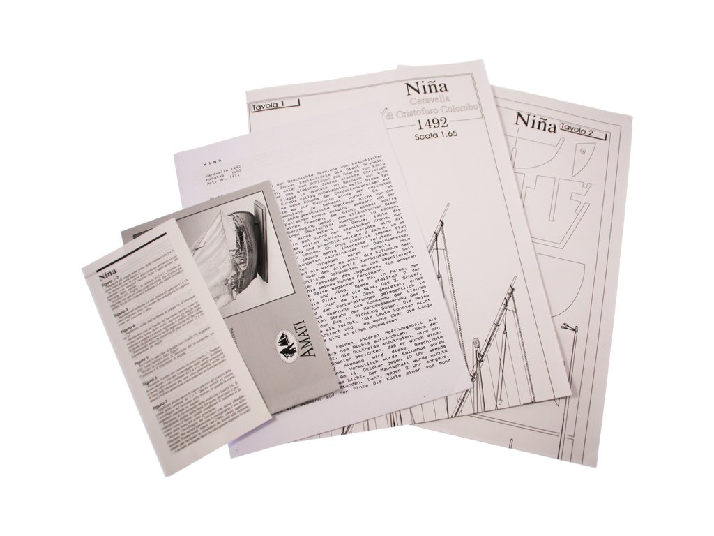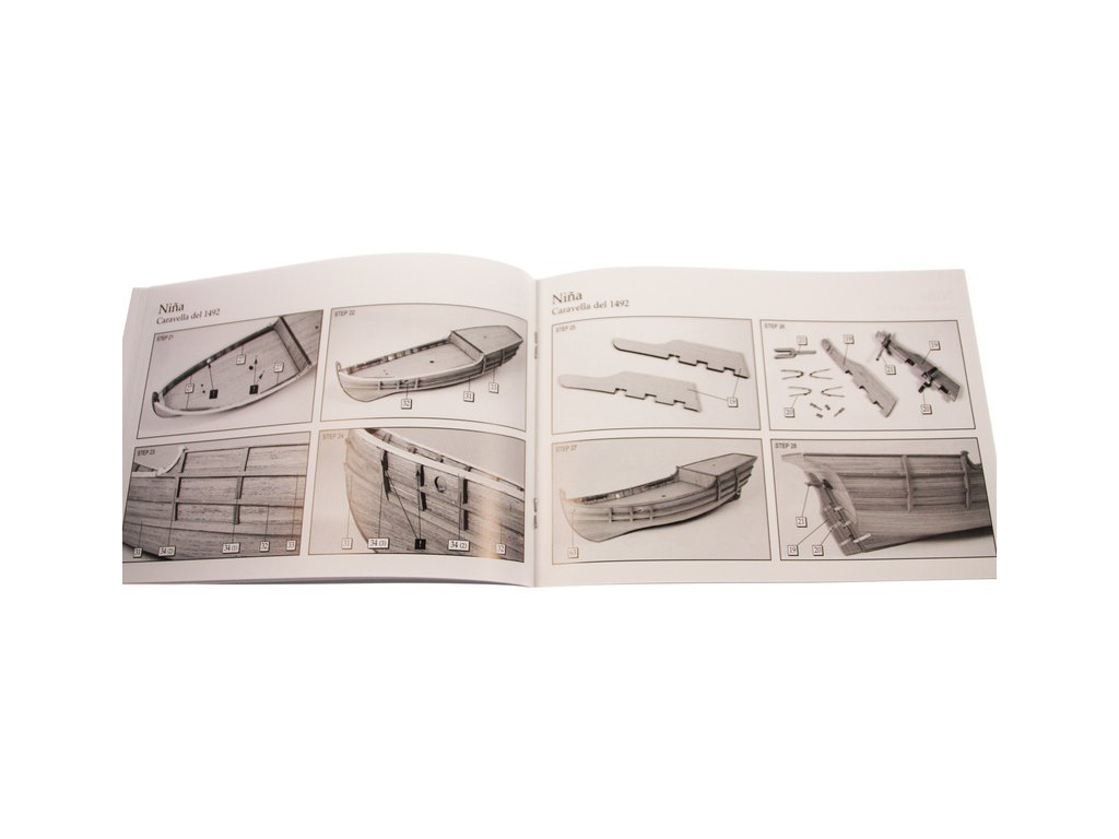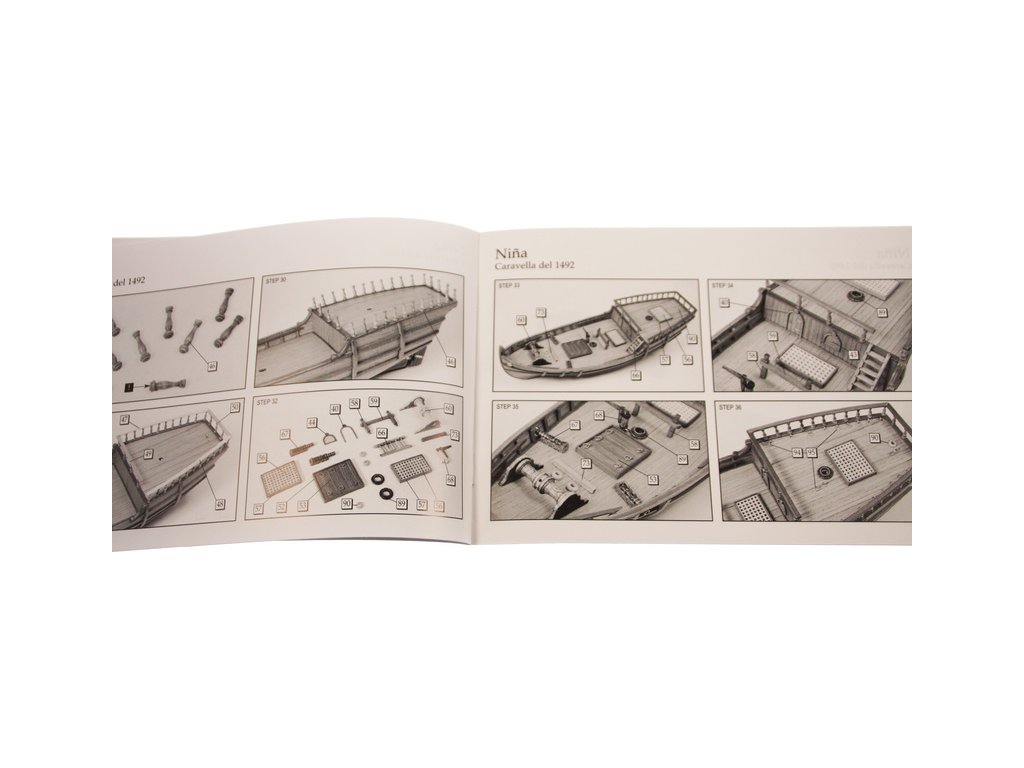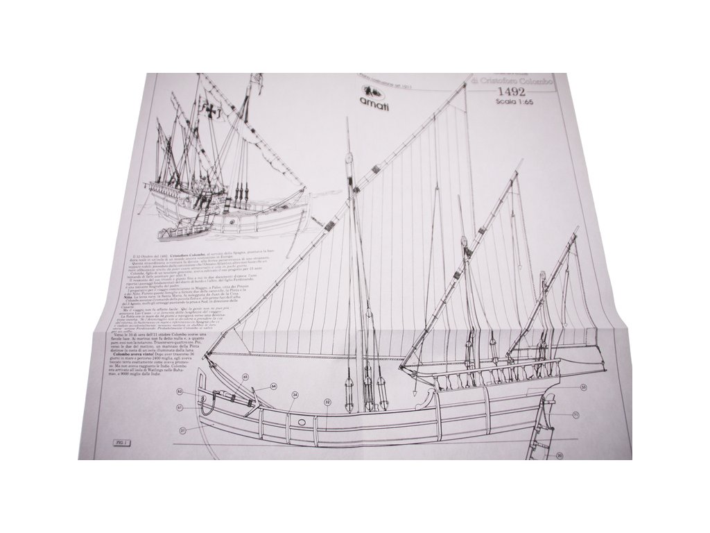 Stavebnice statické makety lodi, AMATI Niňa karavela z roku 1492 v měřítku 1:65 kit. Jedna ze tří lodí, s nimiž Columbus objevil Ameriku. Tento model je součástí série Columbus společnosti AMATI. Dřevěné díly jako kýl a obšívka jsou řezány laserem, obsahuje plachty, lanoví, stožáry, kování a plány.