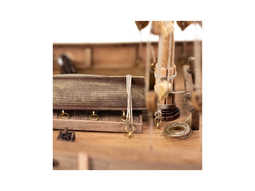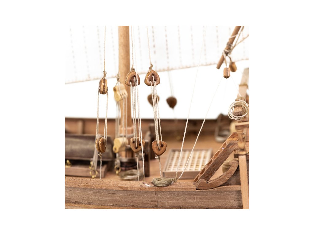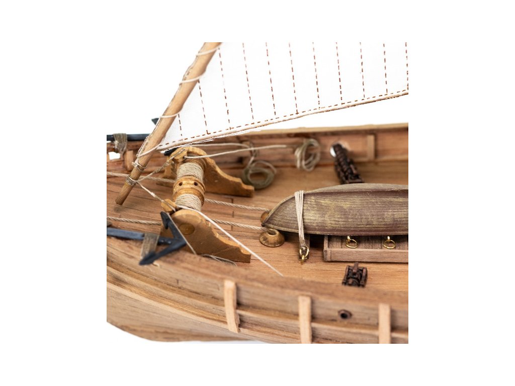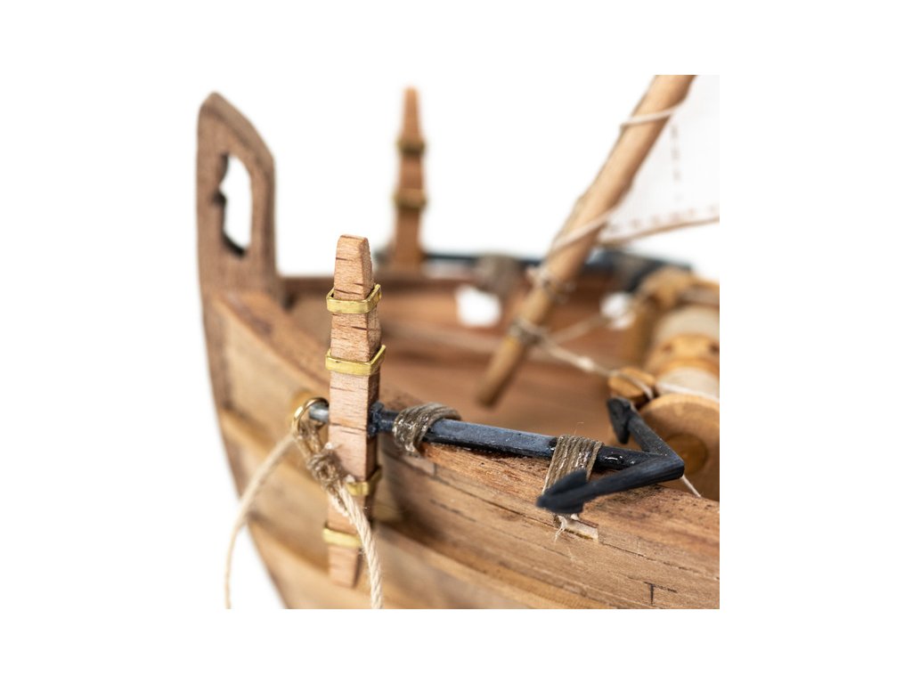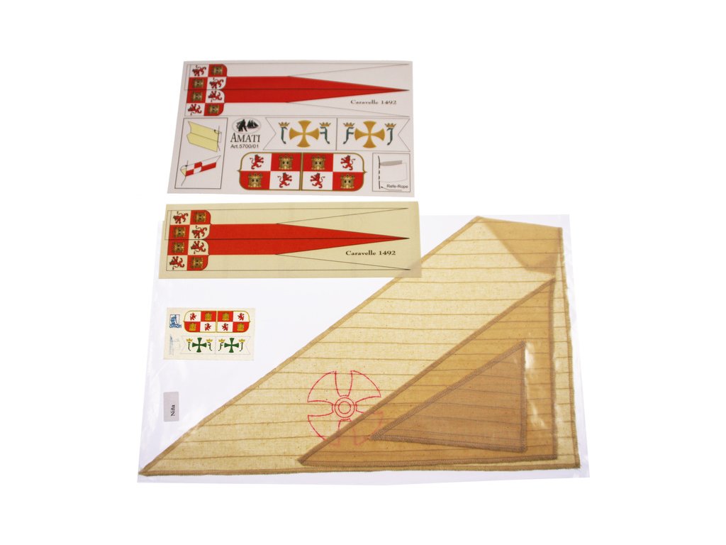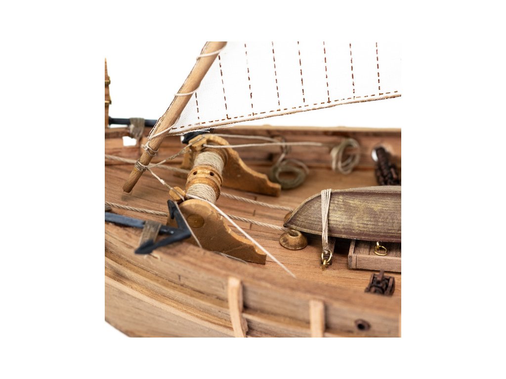 Stavebnice statické makety lodi, AMATI Niňa karavela z roku 1492 v měřítku 1:65 kit. Jedna ze tří lodí, s nimiž Columbus objevil Ameriku. Tento model je součástí série Columbus společnosti AMATI. Dřevěné díly jako kýl a obšívka jsou řezány laserem, obsahuje plachty, lanoví, stožáry, kování a plány.