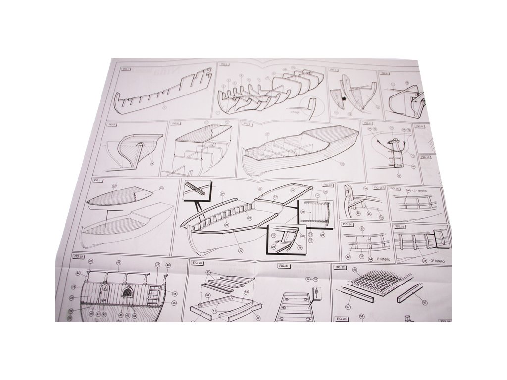 Set obsahuje kompletní sadu výkresové dokumentace modelu v měřítku 1:1 s postupem stavby, na výkrese jsou pečlivě označeny díly a je zde i seznam jednotlivých součástí modelu.