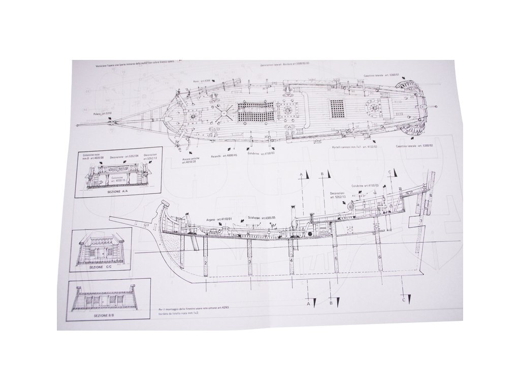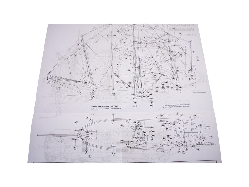 Set obsahuje kompletní sadu výkresové dokumentace modelu v měřítku 1:1 s postupem stavby, na výkrese jsou pečlivě označeny díly a je zde i seznam jednotlivých součástí modelu.