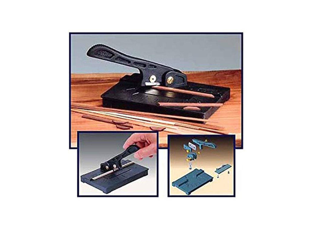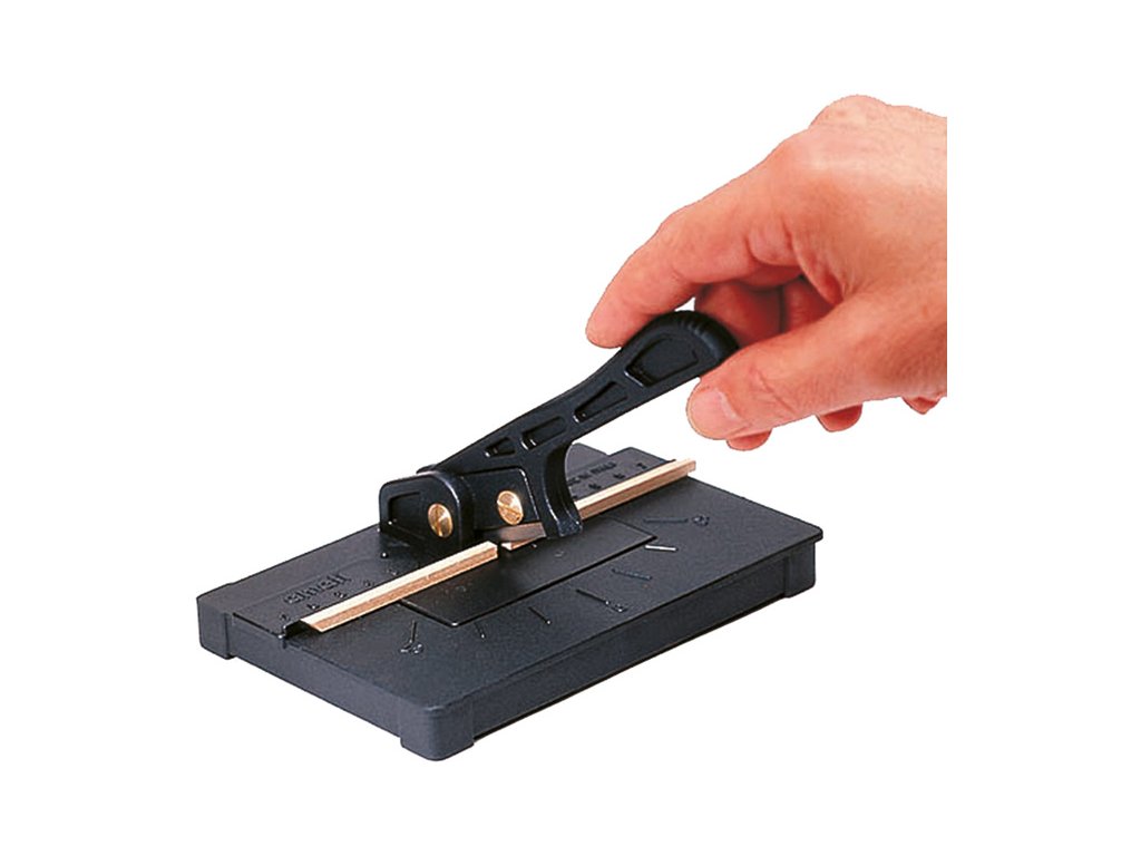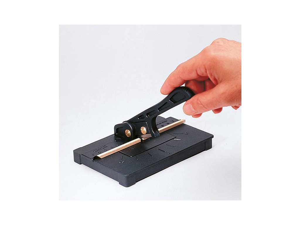 AMATI Řezačka (mini pákové nůžky) Master Cut umožňují provádět přesné dělení dřevěných nebo plastových proužků. Otočné rameno s čepelí může krájet materiál pod úhlem -45° až +45°. Díky dorazu jsou možné dělit shodné kusy. Vyrobeno z pevného plastu a kovu, obsahuje náhradní čepele. Rozměry základní desky jsou 155x100mm.