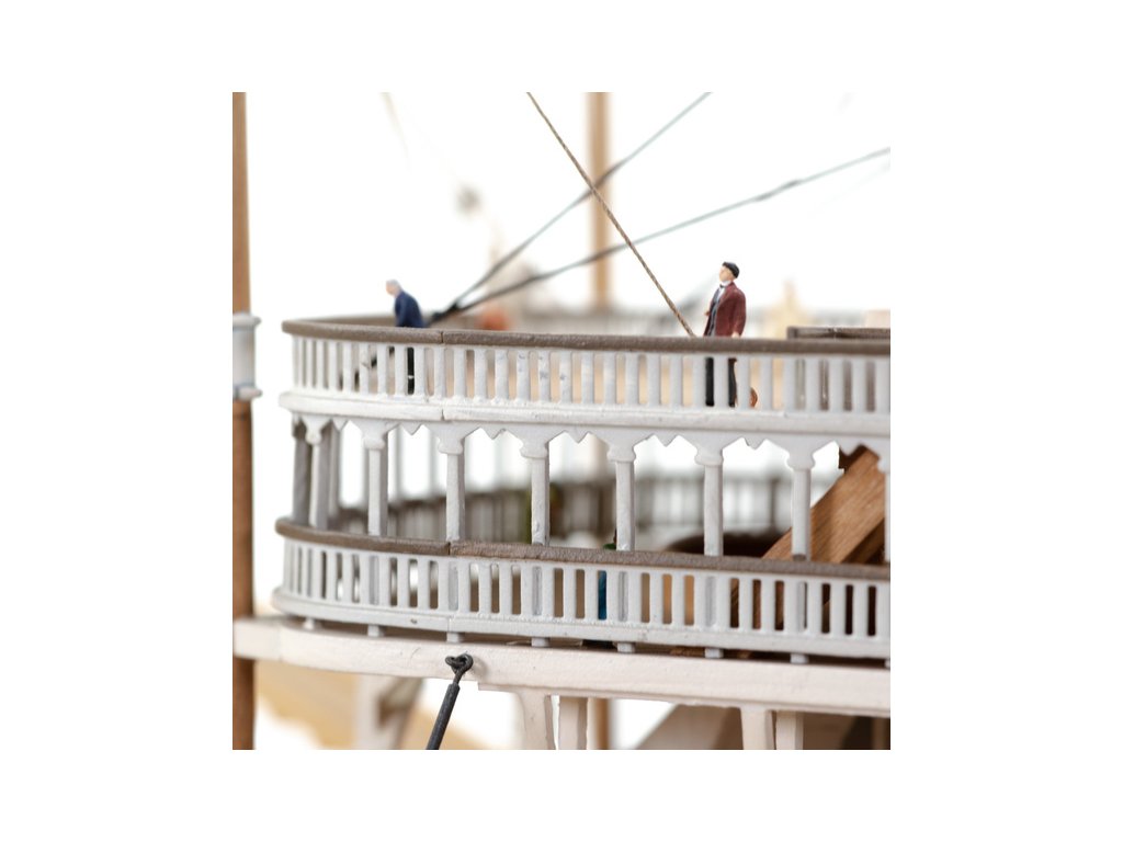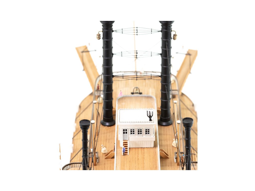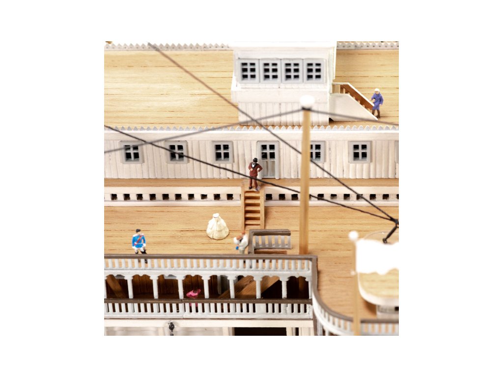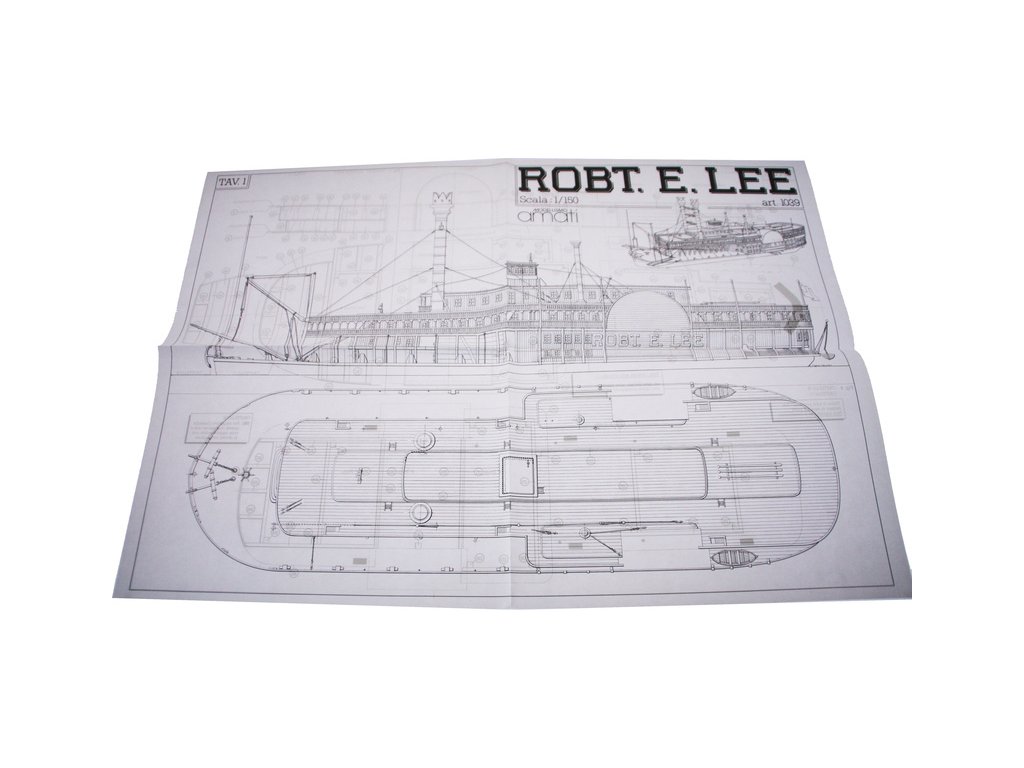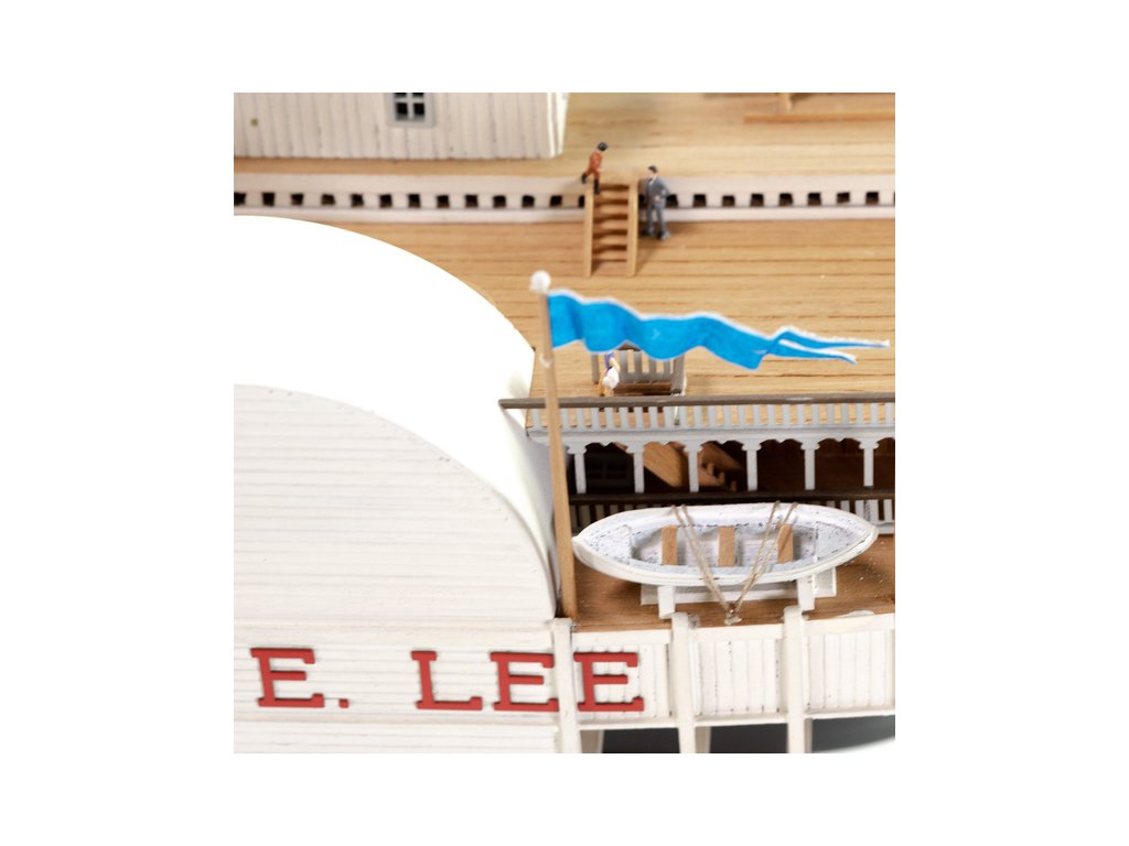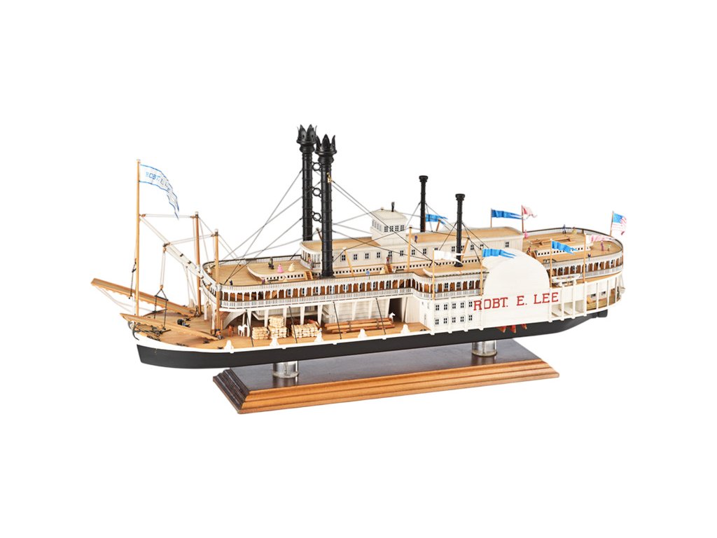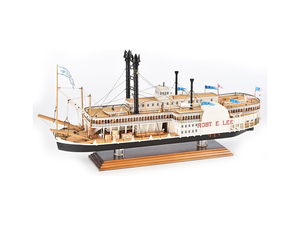 Stavebnice statické makety historické lodi AMATI Robert E. Lee 1870 1:150 kit. První hlavní silnice v Americe byly velké řeky, které umožnily růst obchodu a dopravy. Loď Robert E. Lee byl říční parník. Dřevěné díly jsou řezány laserem, obsaženy jsou mosazné leptané díly, kování, doplňky.