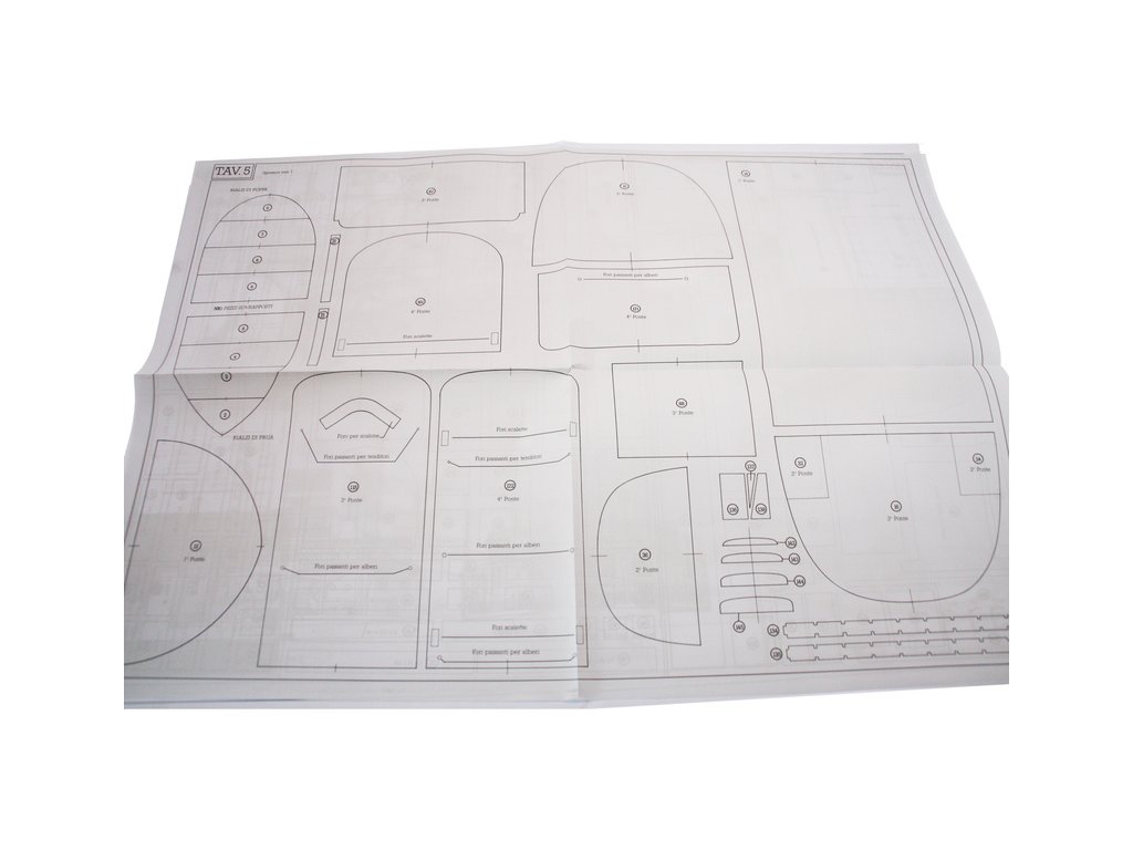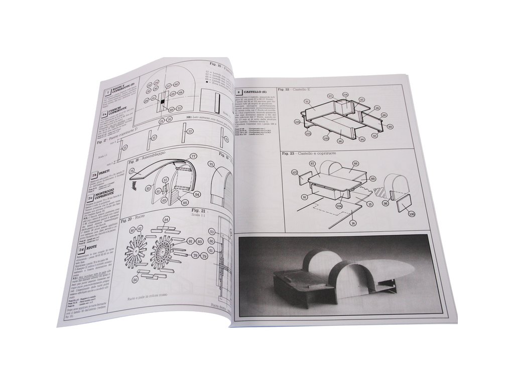 Set obsahuje kompletní sadu výkresové dokumentace modelu v měřítku 1:1 s postupem stavby, na výkrese jsou pečlivě označeny díly a je zde i seznam jednotlivých součástí modelu.