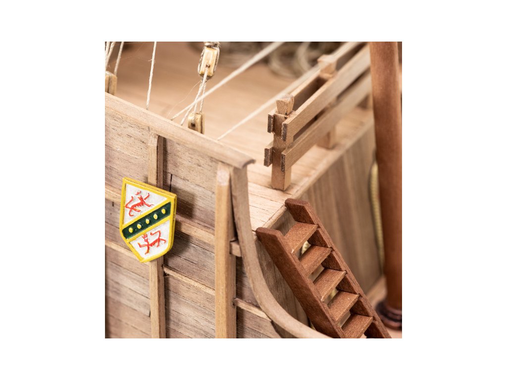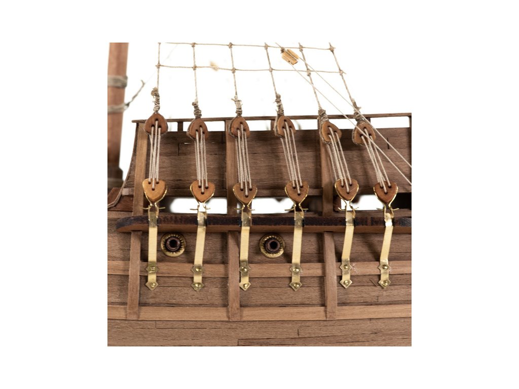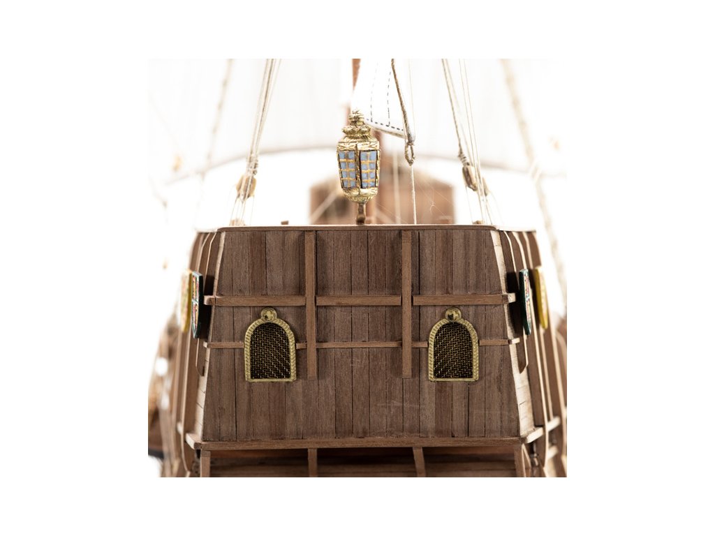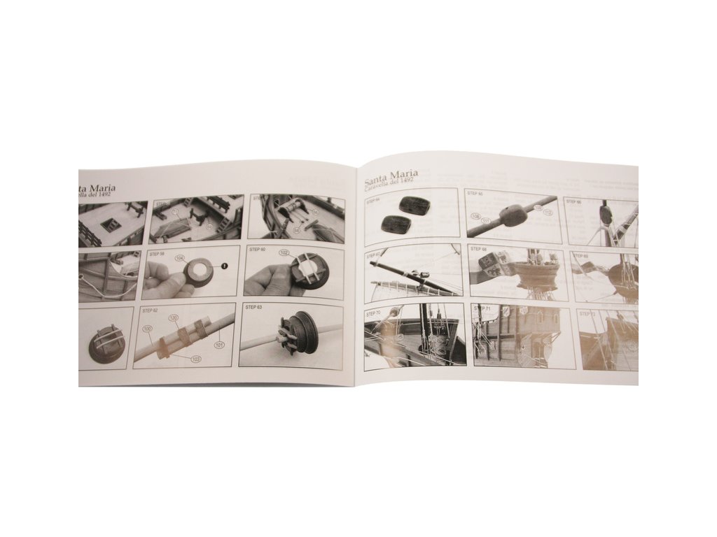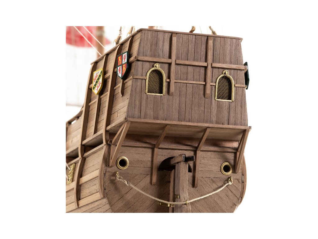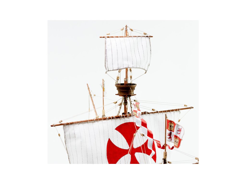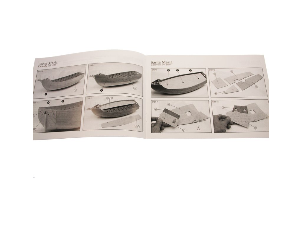Stavebnice statické makety lodi, AMATI Santa Maria karavela z roku 1492 v měřítku 1:65 kit. Jedna ze tří lodí, s nimiž Columbus objevil Ameriku a je stále jednou z nejslavnějších lodí v historii námořnictva. Dřevěné díly jako kýl a obšívka jsou řezány laserem, obsahuje plachty, lanoví, stožáry, kování. Dekorace jsou vyrobeny ze zlaceného litého kovu. Tři stavební plány