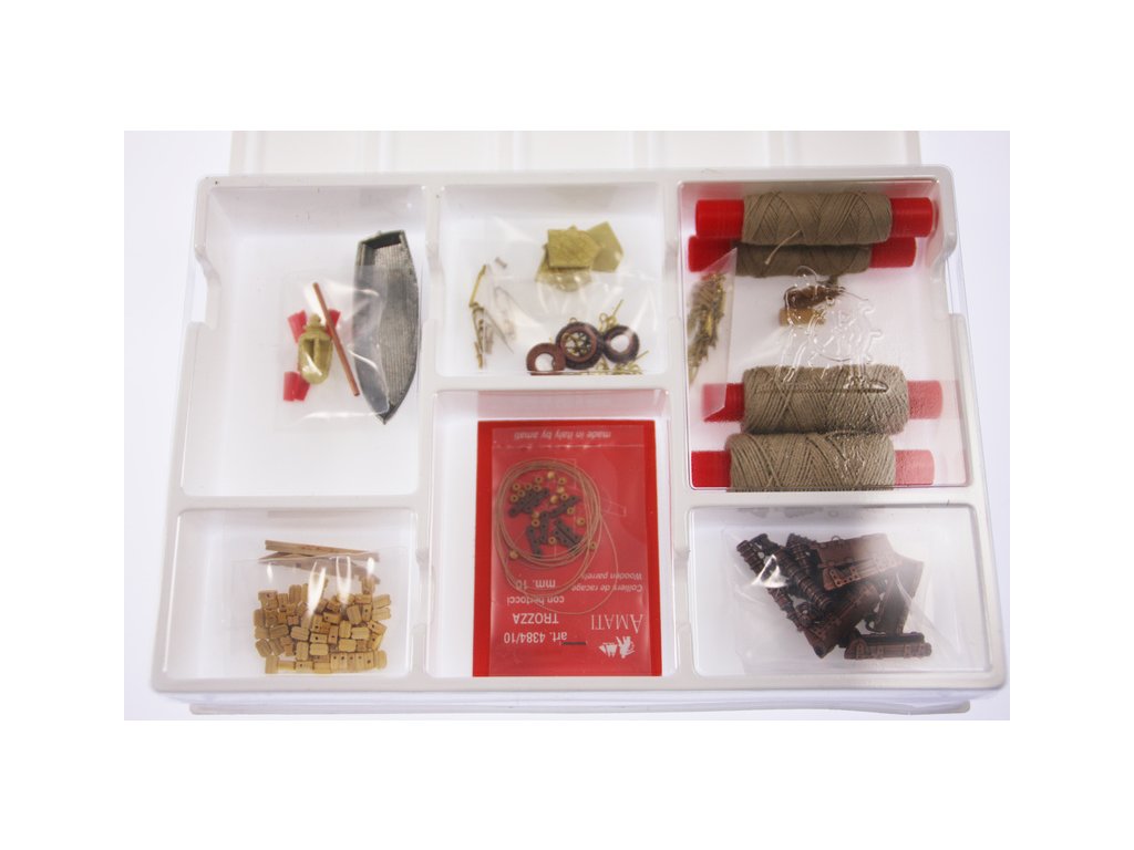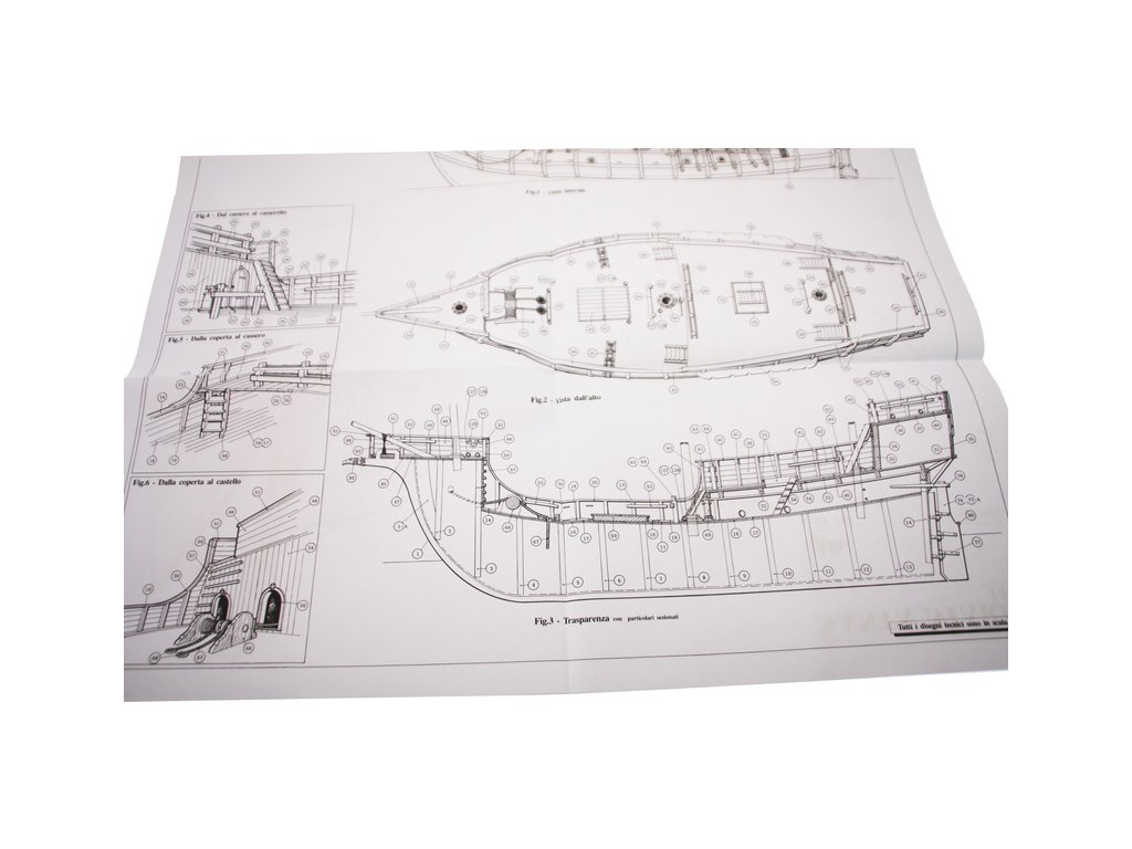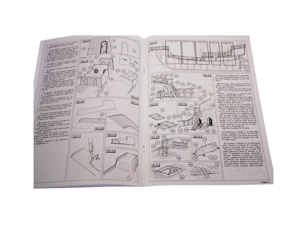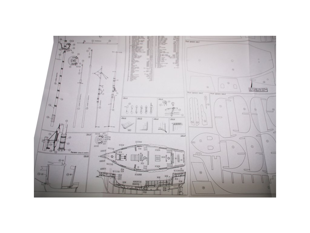 Balení obsahuje sadu překližkových dílů, sadu dřevěných lišt o různém průřezu, blistr s drobnými díly, sadu výkresů, německý a italský manuál s obrázkovým postupem, český návod ke stavbě.