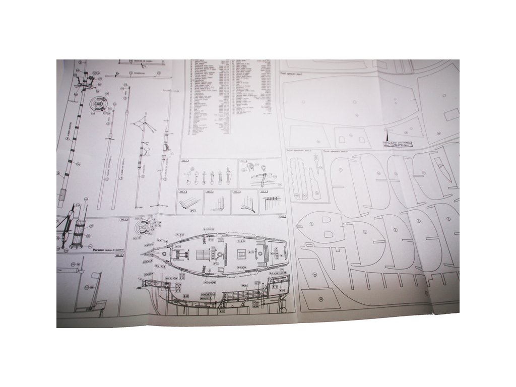 Set obsahuje kompletní sadu výkresové dokumentace modelu v měřítku 1:1 s postupem stavby, na výkrese jsou pečlivě označeny díly a je zde i seznam jednotlivých součástí modelu.