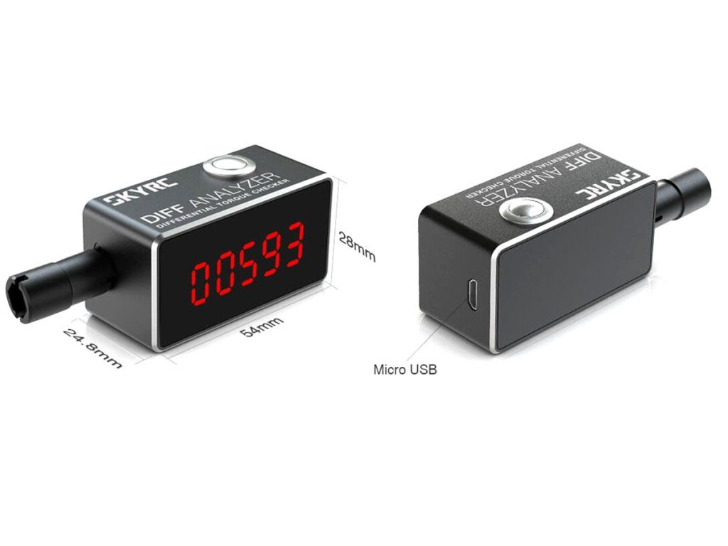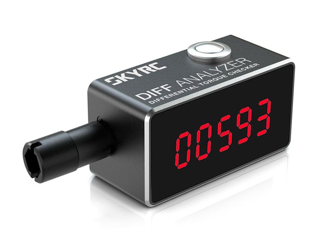 Firma SkyRC vyvinula analyzér diferenciálů pro jemné a přesné nastavování svornosti diferenciálů pro RC auta v měřítku 1:10 a Mini-Z. Analyzér diferenciálů poskytuje číselná data, která pomáhají určit nebo reprodukovat určitou svornost. Výměna oleje v diferenciálu tak již nebude založena jen na citu nebo odhadu. Toto užitečné zařízení vám pomůže změřit nastavení diferenciálu a zaručí stálou svornost diferenciálu po stavbě modelu, údržbě a opravách.
