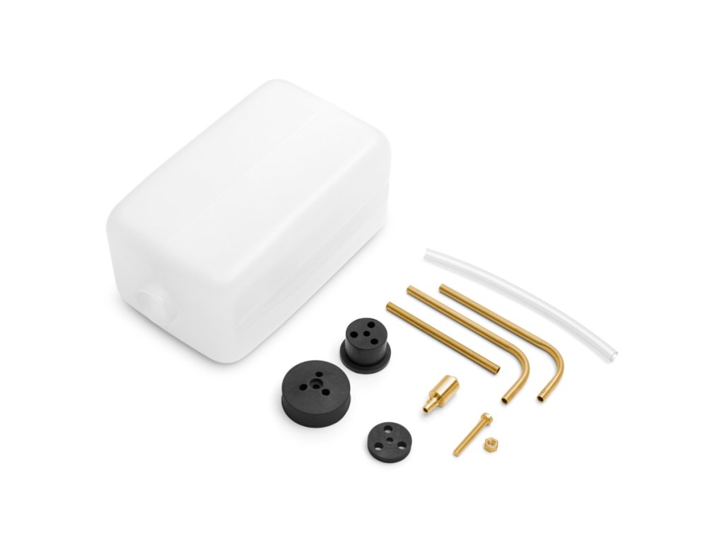 Lehká ale pevná nylonová nádrž 400 ml pro žhavící palivo s odolným víčkem, gumovou zátkou a opěrnou deskou. Předohýbané mosazné fitinky a sací závaží, silikonová hadička. Rozměry (bez hrdla a víčka): 121x70x57 mm, hmotnost: 51g.Doplňkové parametry