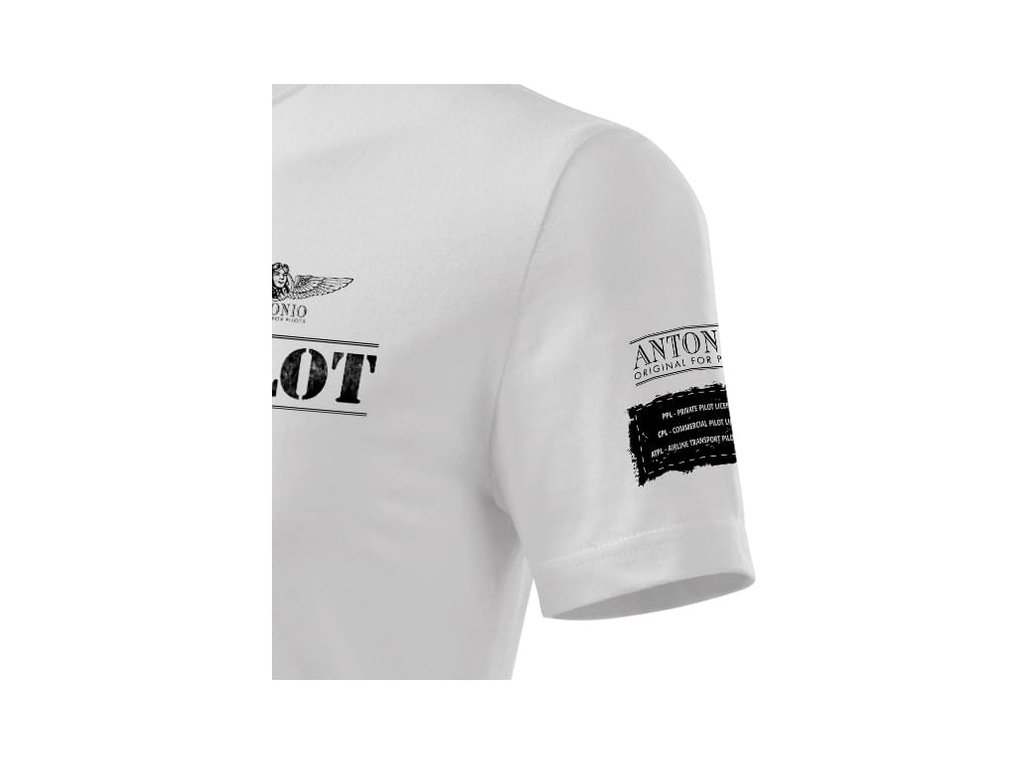 Pánské tričko Antonio Pilot s krátkým rukávem. 100% bavlna se silikonovou úpravou je zárukou příjemného pocitu při nošení. Látka 200 g/m², pleteno single jersey, bílá barva, luxusní dárkové balení.