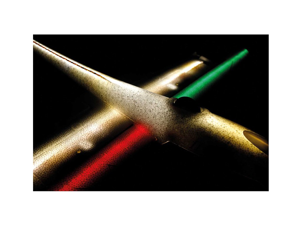 Arcus II Night lze volitelně dovybavit vytlakovými klapkami. Velká křidélka mají již vyznačemou dělicí čáru pro oddělení a také montážní body pro páky serv. Křídla jsou vybavena kabelovými kanály pro serva. Stačí tedy pouze dostupná sada pro dovybavení a další dvě serva cca 9 g, vhodné lepidlo a samozřejmě volný kanál na dálkovém ovladači a přijímači. Montáž je samozřejmě popsána v ilustrovaném stavebním návodu.