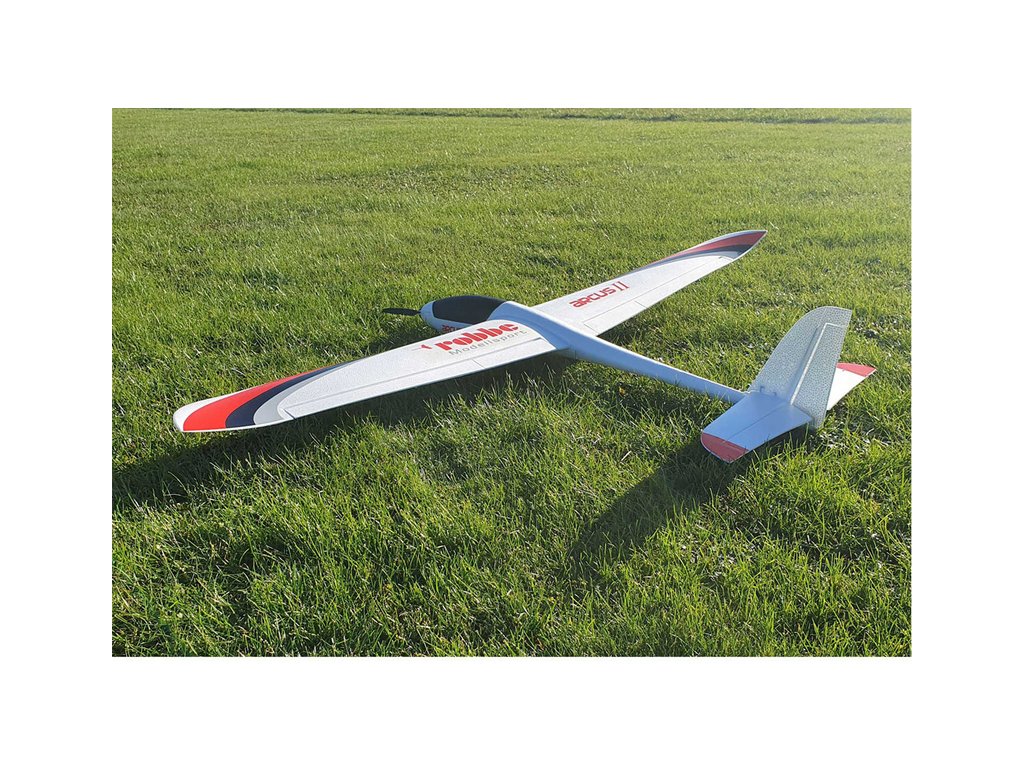 Bez ohledu na to, zda jste začátečník nebo pokročilý pilot, je Arcus II Night správnou volbou při hledání výkonného a kompaktního větroně s elektrickým pohonem. I přes rozpětí křídla 1,8 m se dá díky dělenému křídlu snadno přepravovat. Model je dodáván se čtyřmi namontovanými servy pro křidélka, směrovku a výškovku a také s namontovaným pohonem. Příslušenství obsažené v balení doplňují uhlíkové výztuhy v trupu a křídlech, dále podvozek a dva plastové chrániče trupu.