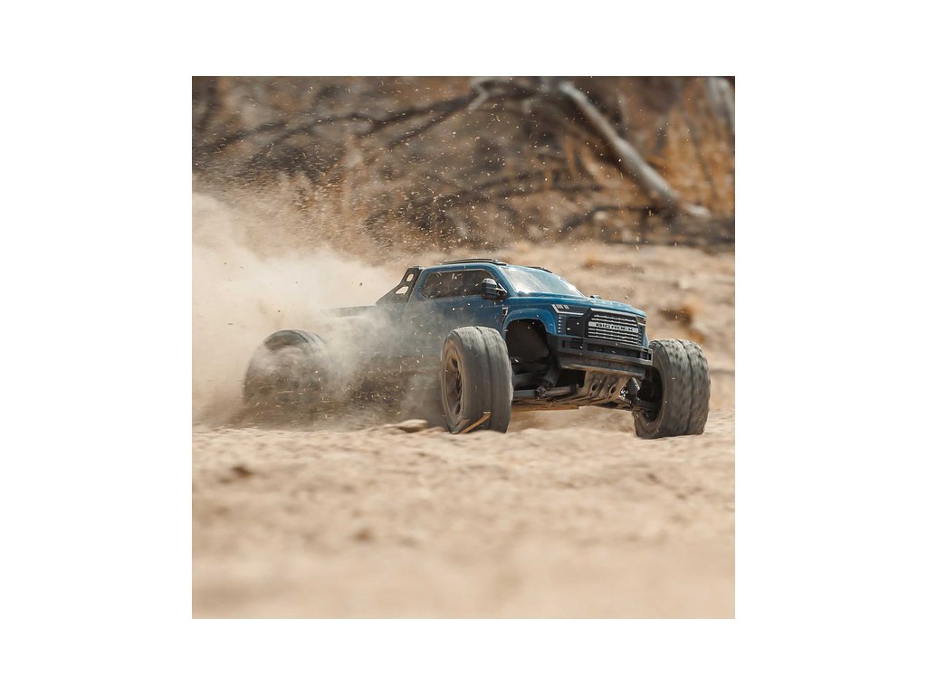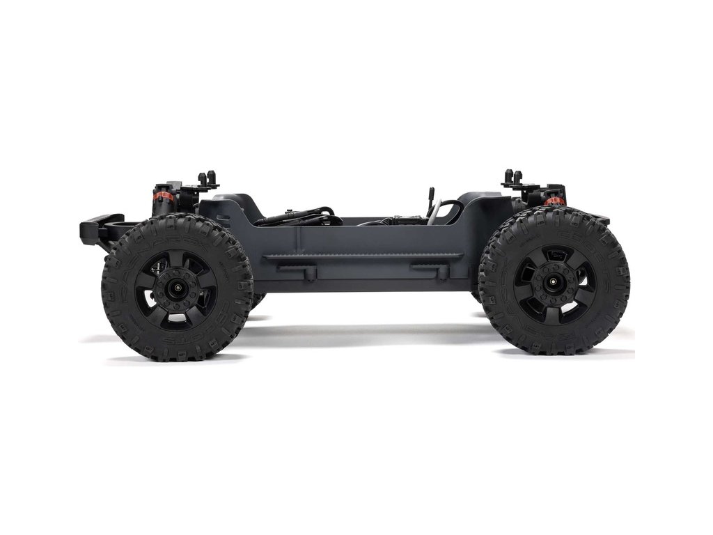 Osvědčená odolná platforma ARRMA® 4X4, vám umožní jezdit vysokou rychlostí téměř v jakémkoli prostředí - v terénu, na šotolině a trávě, na parkovištích i po zpevněných a asfaltových površích. Odolnost šasí vychází ze silného kompozitového podvozku, s prodlouženou výškou chráničů nečistot. Použité kovové převody jsou dostatečně odolné pro střídavý pohon. Výkon je distribuován na jednotlivá kola pomocí přední, zadního a středového diferenciálu. Maximální trakci zajišťují osvědčené pneumatiky dBoots. Vysílač Spektrum SLT poskytuje bezpečný provoz bez výpadků, pro bezstarostnou jízdu jsou na modelu použity voděodolné* komponenty - regulátor s přijímače Spektrum 2-v-1 80A a servo řízení Spektrum S662 s vysokým točivým momentem a kovovými převody.