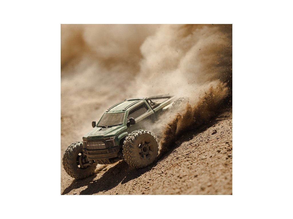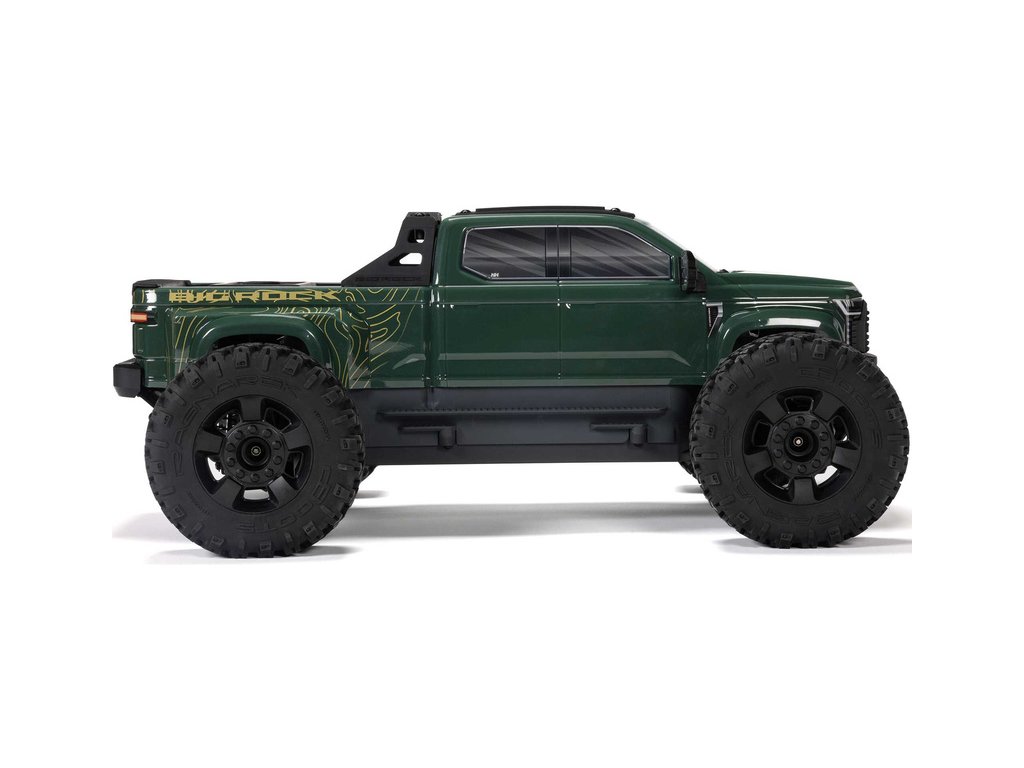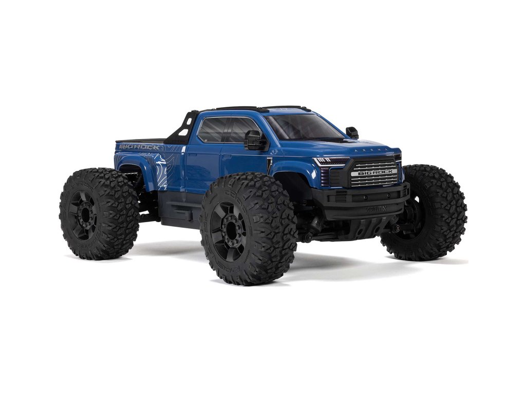 RC model auta Arrma Big Rock 223S BLX typu Monster truck s náhonem 4WD, nezávislým zavěšením, olejovými tlumiči a výkonným střídavým pohonem, dosáhne rychlosti až 80 km/h. To vše za dostupnou cenu pro takto výkonný model. Výborné jízdní vlastnosti zajišťuje pohon všech kol se středovým a nápravovými diferenciály. Obsažena je exkluzivní stabilizace jízdy DSC. RC auto je určeno pro děti, dospělé, začátečníky i zkušené jezdce, kteří získají hotový, odolný a rychlý model. Bezsponková karoserie s dlouhou korbou je ztělesněním agresivního stylu nákladních pick-up vozidel.