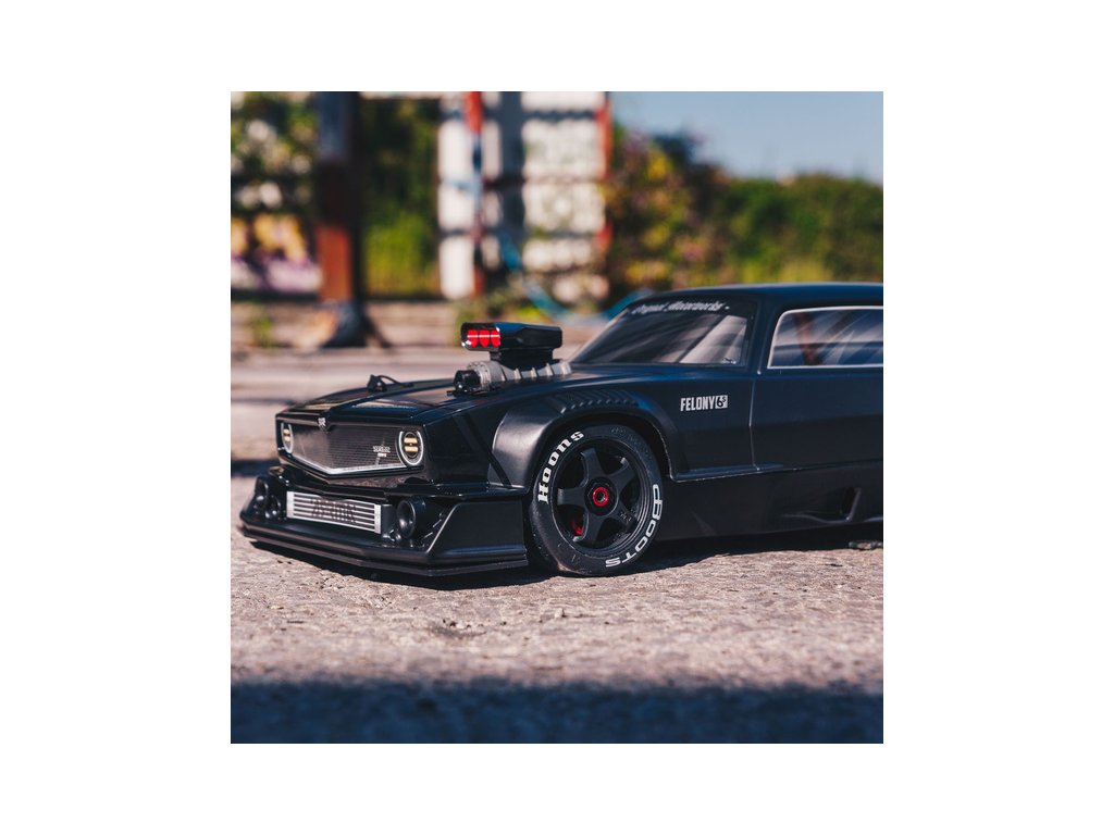 RC model auta Arrma Felony 6S BLX 4WD v měřítku 1:7 je nadupaný americký supervůz, který dokáže jezdit rychlostí více než 120 km za hodinu! Hliníkové šasí, ocelové převody a hřídele, hliníkové věže i tlumiče. Elektronika Spektrum Smart, elektronická stabilizace AVC.