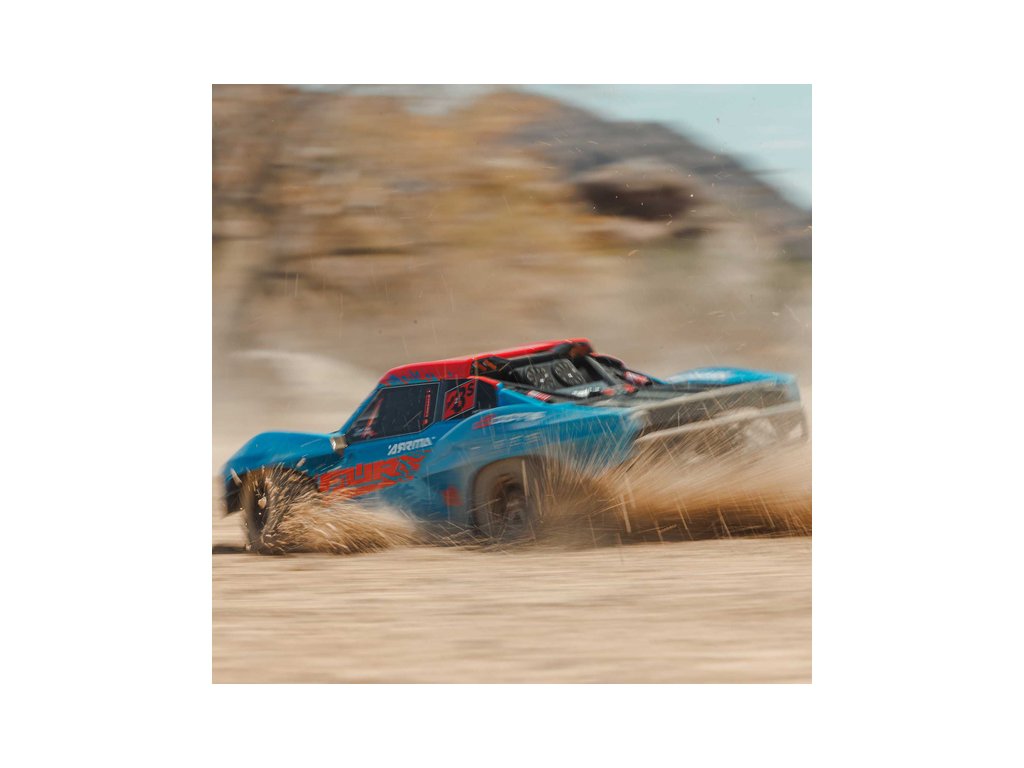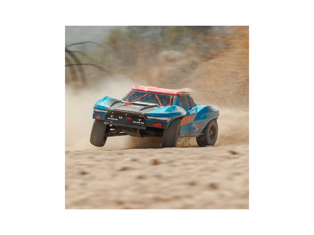 RC model auta Arrma Fury 223S BLX typu Short Course s náhonem 2WD, nezávislým zavěšením, olejovými tlumiči a výkonným střídavým pohonem, dosáhne rychlosti až 80 km/h. To vše za dostupnou cenu pro takto výkonný model. Odolnost, výkon BLX a precizní maketové zpracování jsou vlastní značce Arrma a i tohoto modelu jsou zachovány všechny důležité vlastnosti. Obsažena je exkluzivní stabilizace jízdy DSC. RC auto je určeno pro děti, dospělé, začátečníky i zkušené jezdce, kteří získají hotový, odolný a rychlý model.