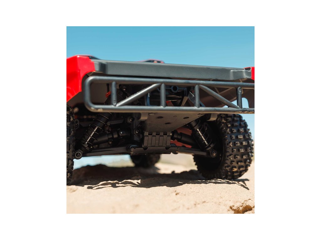 Kompozitní šasi je vyrobeno s odolností ARRMA. Má účelnou konstrukci s pevným úzkým tělem, které je ze spodní strany rovné, aby se nezadrhávalo o překážky.
