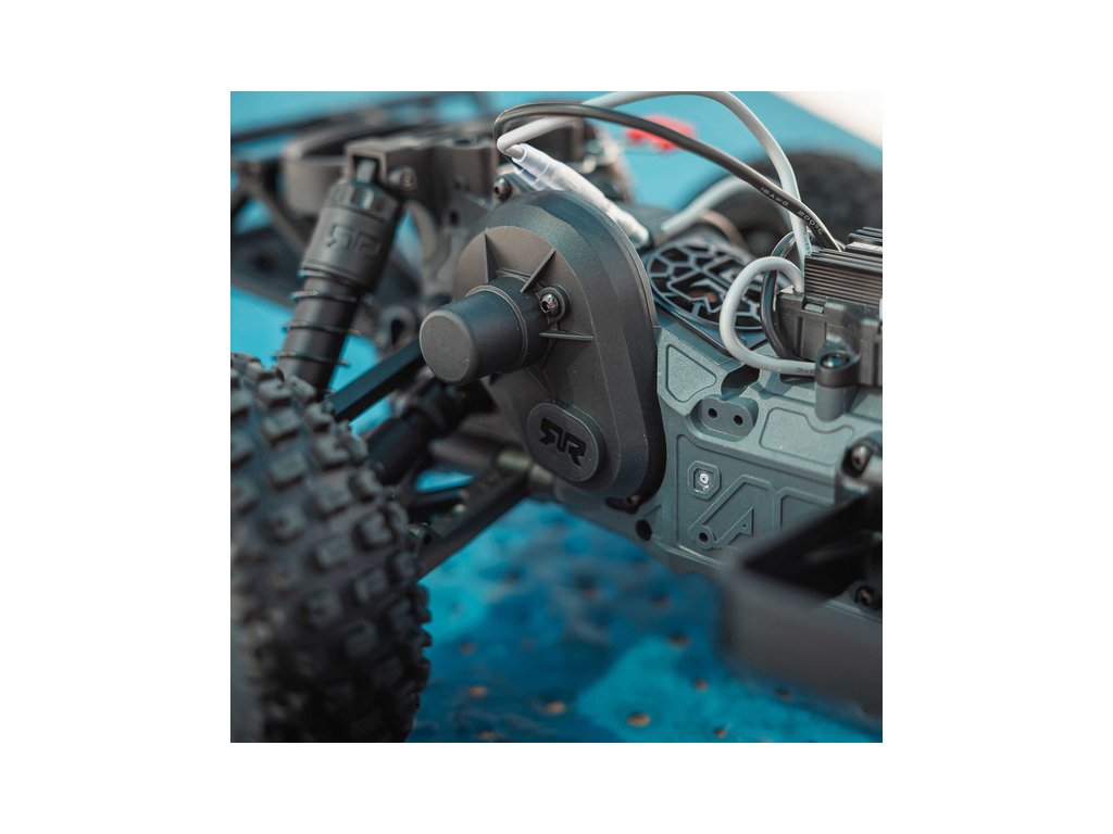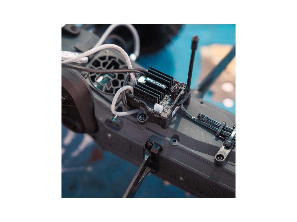 Vysílač Spektrum SLT poskytuje bezpečný provoz bez výpadků a pro začátečníky umožňuje možnost omezení výkonu na 75%, nebo 50%. Pro bezstarostnou jízdu jsou na modelu použity voděodolné* komponenty - regulátor s přijímače Spektrum 2-v-1 40A a servo řízení Spektrum S660 s vysokým točivým momentem.