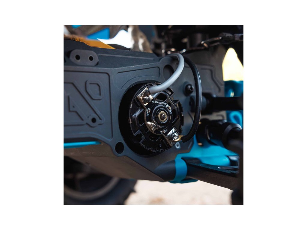Vysílač Spektrum SLT poskytuje bezpečný provoz bez výpadků a pro začátečníky umožňuje možnost omezení výkonu na 75%, nebo 50%. Pro bezstarostnou jízdu jsou na modelu použity voděodolné* komponenty - regulátor s přijímače Spektrum 2-v-1 25A a servo řízení Spektrum S660 s vysokým točivým momentem.