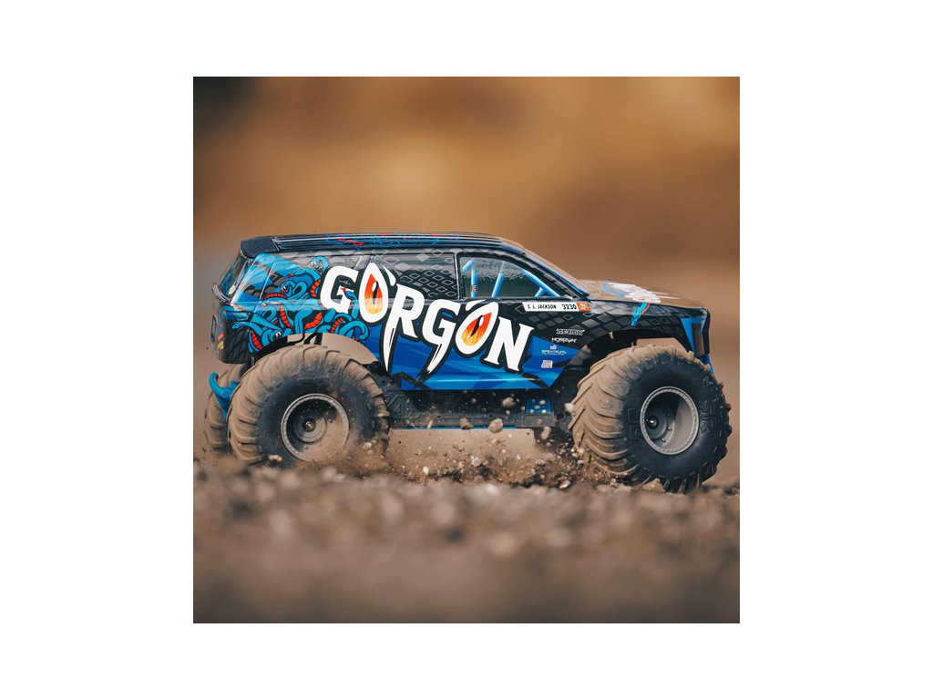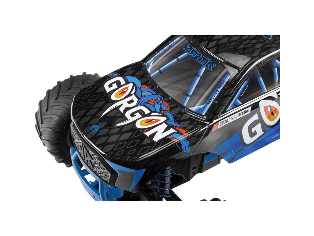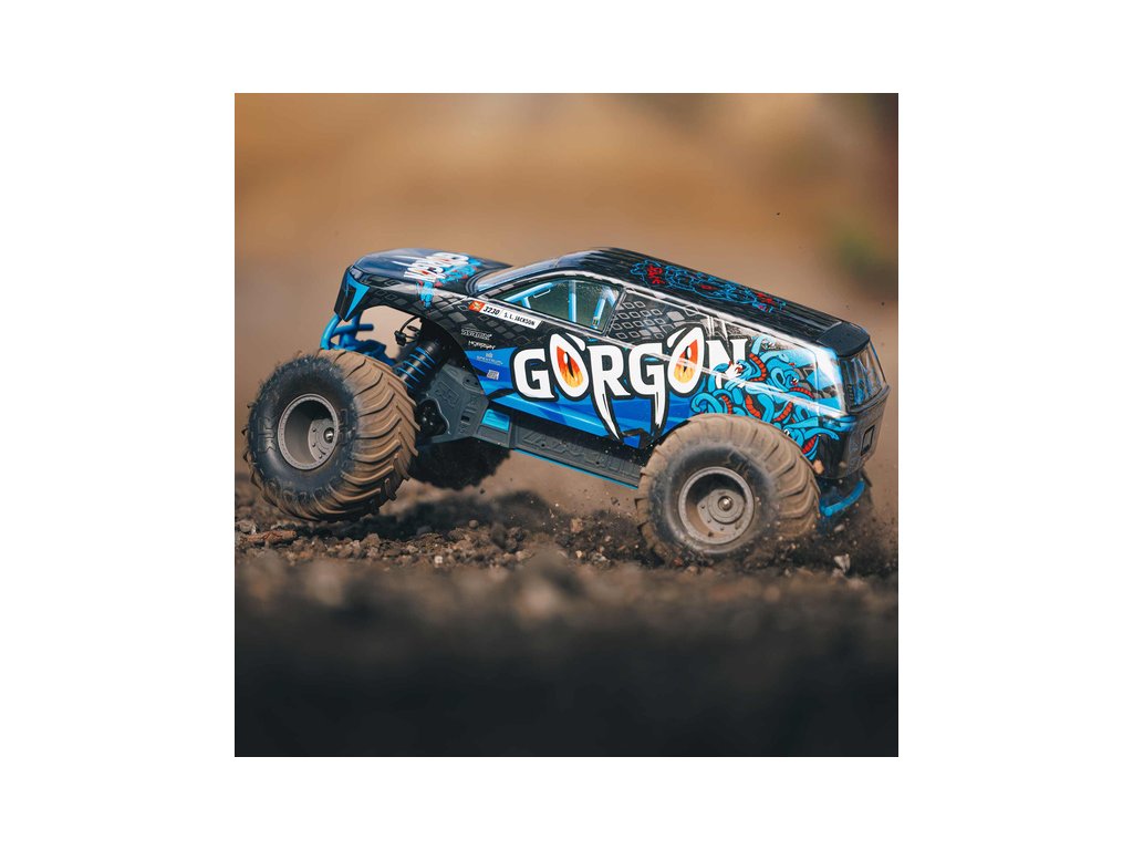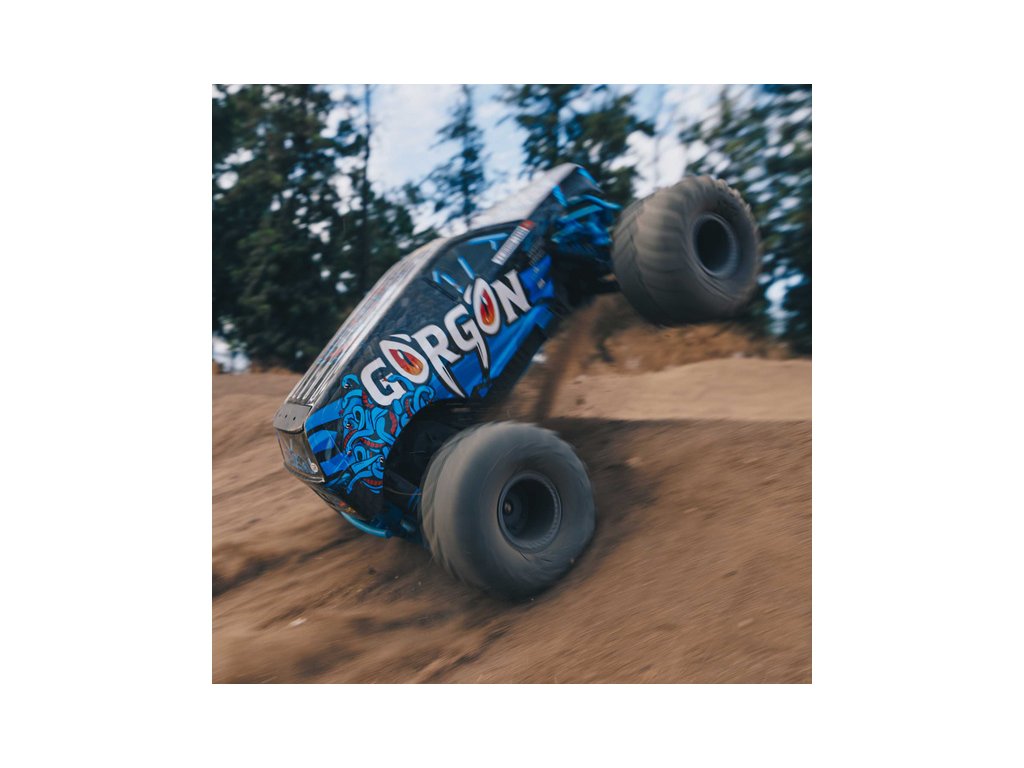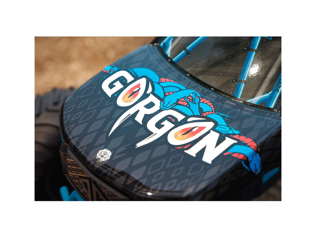 Ihned po vybalení přitáhne Gorgon vaši pozornost, díky originálnímu vzhledu. Karoserie je z výroby dokončena ve velmi atraktivním moderním stylu a je barevně sladěna s jednotlivými díly šasi, jako jsou pružiny, přihrádka na baterii, kluzné desky a nárazníky. Osvědčená technologie ARRMA má díky kompozitnímu šasi vysokou odolnost. Nezávislé zavěšení, olejové tlumiče a nastavitelná světlá výška zajišťují komfortní jízdu. Pro nezastavitelnou trakci přenáší 2WD převodovka výkon ze stejnosměrného motoru MEGA 550 do masivních pneumatik dBoots ® Chevron, nalepených na nylonových discích. Použité kovové převody jsou dostatečně odolné i pro případný upgrade na střídavý pohon.