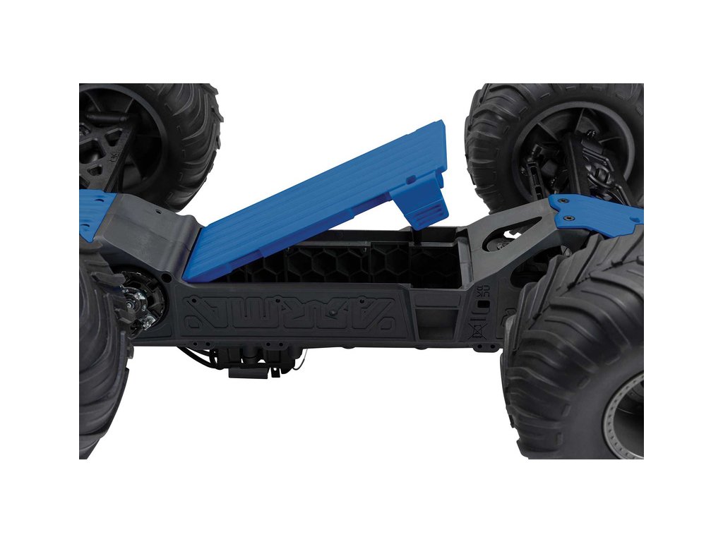 Kompozitní šasi je vyrobeno s odolností ARRMA. GORGON MT má účelnou konstrukci s pevným úzkým šasi, nezávislým zavěšením a olejem plněnými tlumiči pro hladké absorbování nerovností. Přihrádka pro baterii ze spodní strany šasi umožňuje výměnu akumulátoru, aniž byste museli sundávat karoserii.