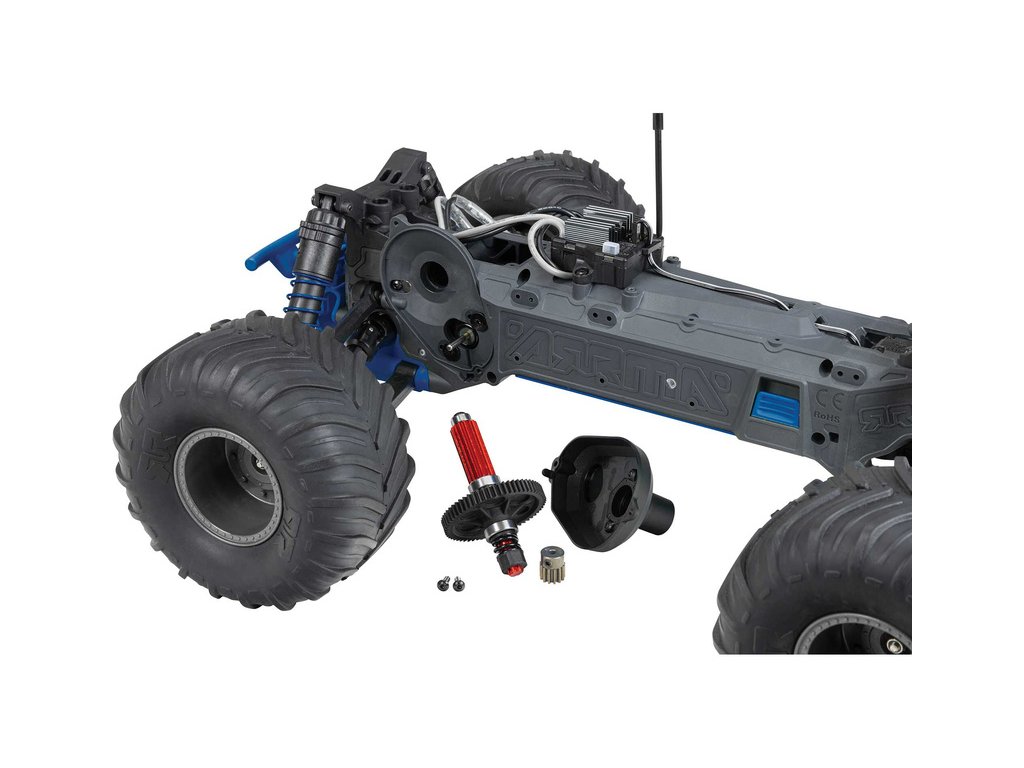 Převodovka modelu ARRMA GORGON MT, zajišťuje přenos výkonu ze stejnosměrného motoru MEGA 550 14T na zadní kola. Převodovka je dostatečně dimenzovaná, aby odolala i střídavému pohonu.