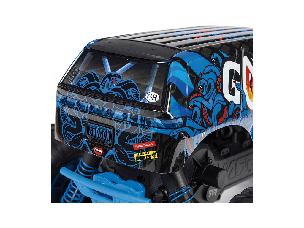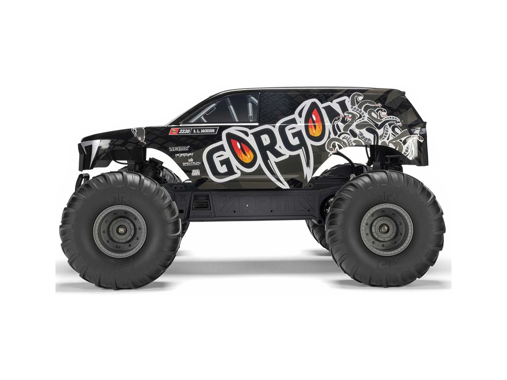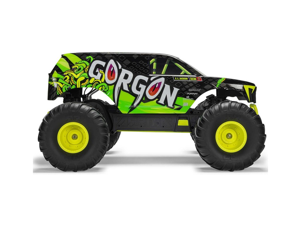 Auto na dálkové ovládání Arrma Gorgon 1:10 Smart RTR, je cenově dostupný RC model typu Monster Truck s náhonem 2WD, nezávislým zavěšením, olejovými tlumiči, proporcionálním řízením a stejnosměrným motorem. RC souprava SLT 2.4 GHz. V balení NiMH baterie a USB nabíječ.