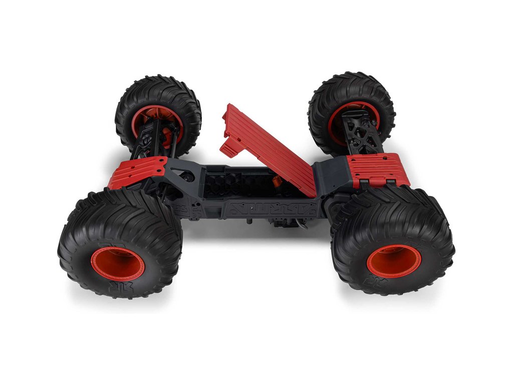 Kompozitní šasi je vyrobeno s odolností ARRMA. GORGON MT má účelnou konstrukci s pevným úzkým šasi, nezávislým zavěšením a olejem plněnými tlumiči pro hladké absorbování nerovností. Přihrádka pro baterii ze spodní strany šasi umožňuje výměnu akumulátoru, aniž byste museli sundávat karoserii.