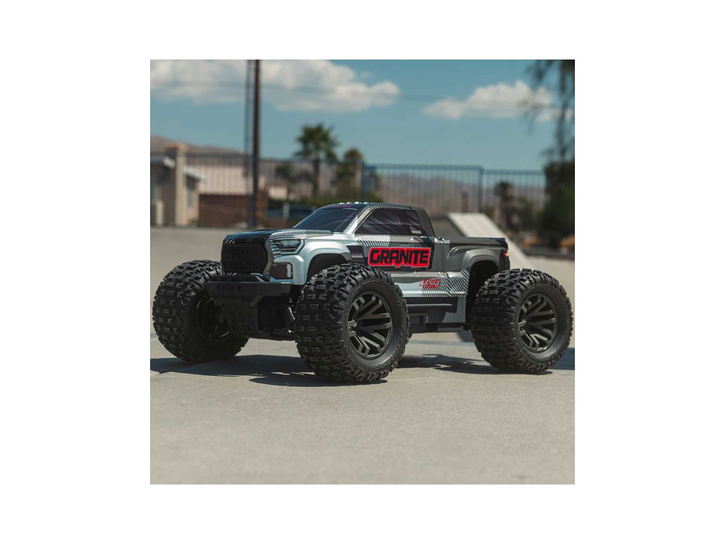 Arrma Granite je výkonnostně všestranný model a může postupně růst s vašimi řidičskými schopnostmi. Pro začátek můžete model provozovat na 2S LiPo akumulátor a omezit výkon plynu na 50%. Později můžete zvýšit plyn na 75% a 100% a dokonce do modelu připojit 3S LiPo akumulátor a dosáhnout rychlosti až 80 km/h.