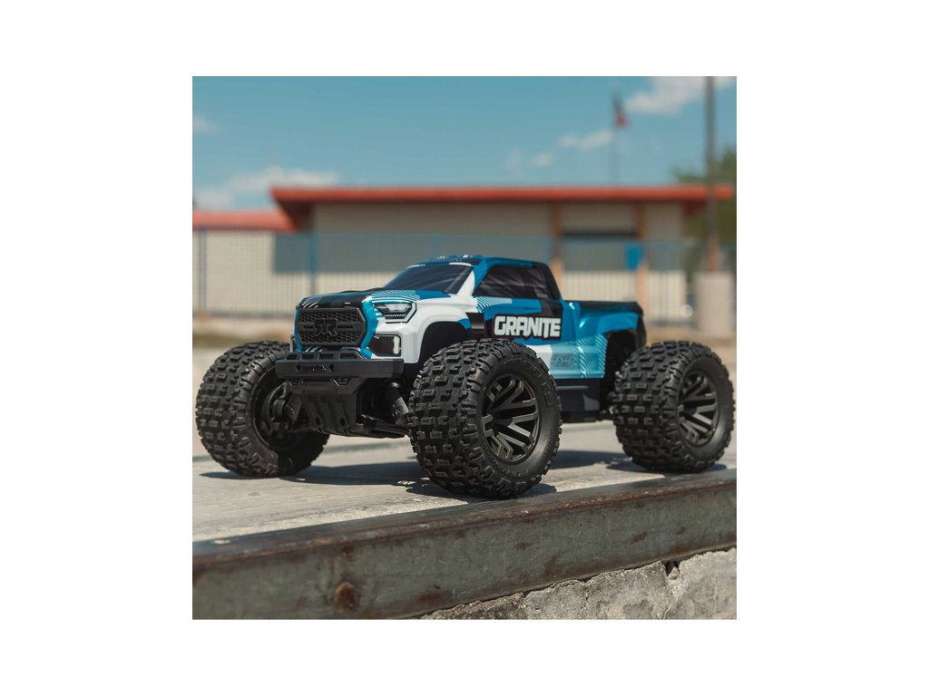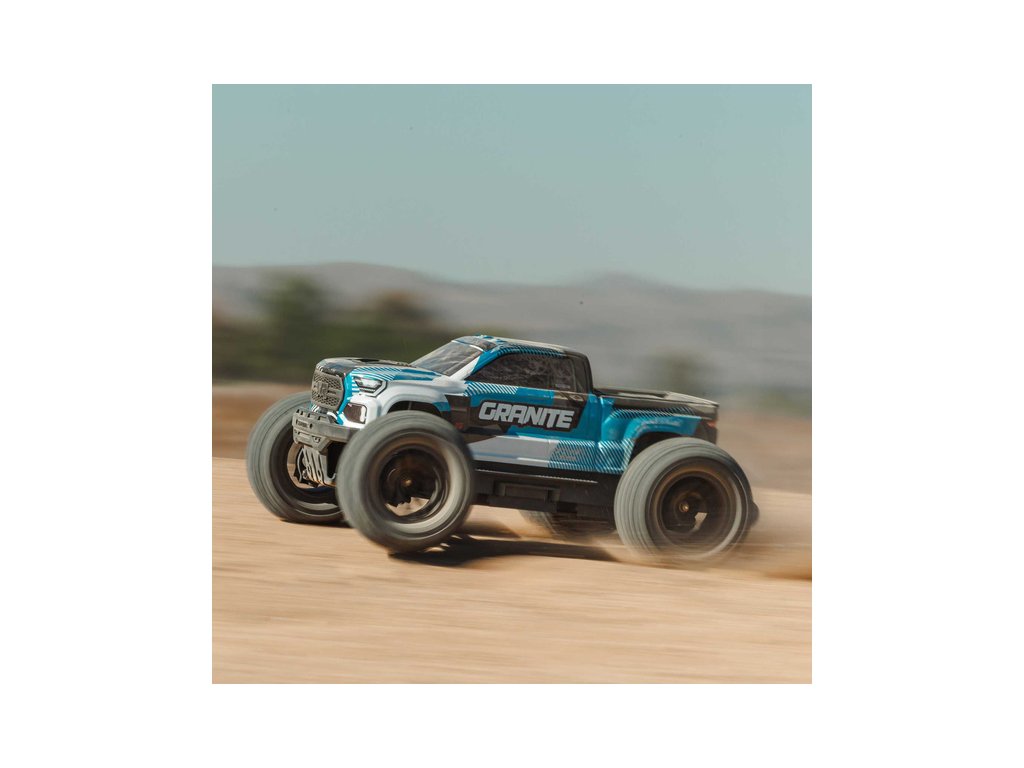 RC model auta Arrma Granite 223S BLX typu Monster truck s náhonem 4WD, nezávislým zavěšením, olejovými tlumiči a výkonným střídavým pohonem, dosáhne rychlosti až 80 km/h. To vše za dostupnou cenu pro takto výkonný model. Výborné jízdní vlastnosti zajišťuje pohon všech kol se středovým a nápravovými diferenciály. Obsažena je exkluzivní stabilizace jízdy DSC. RC auto je určeno pro děti, dospělé, začátečníky i zkušené jezdce, kteří získají hotový, odolný a rychlý model. To vše s agresivním vzhledem karoserie se skrytým bezsponkovým systémem uchycení.