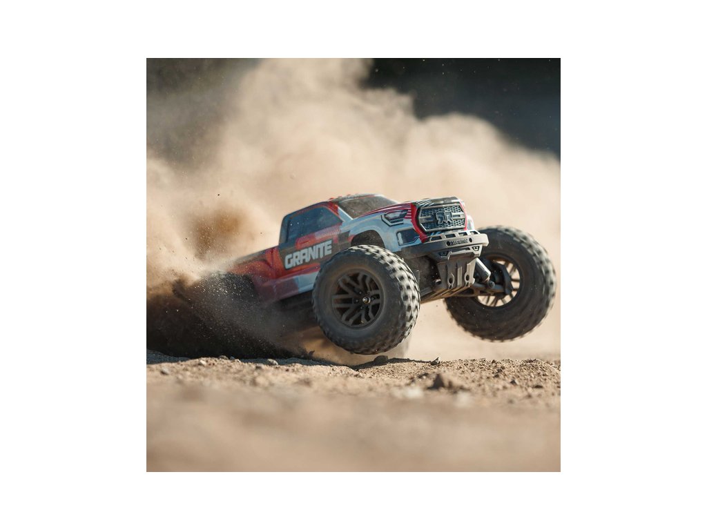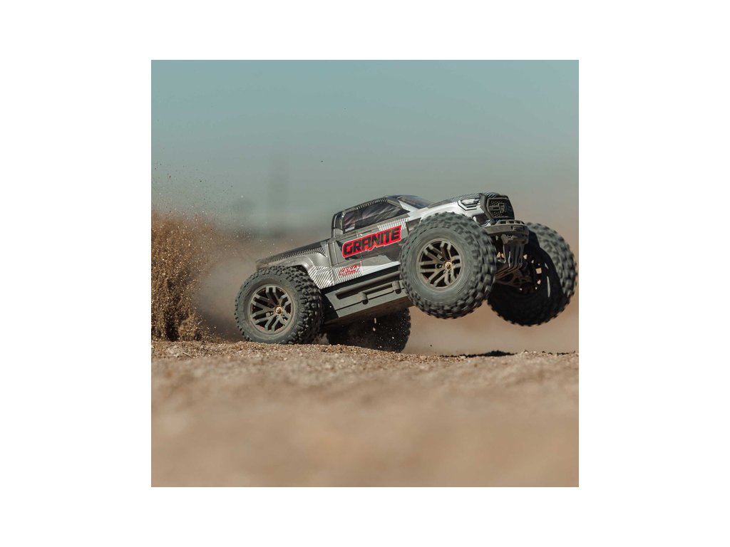 Arrma Granite je výkonnostně všestranný model a může postupně růst s vašimi řidičskými schopnostmi. Pro začátek můžete model provozovat na 2S LiPo akumulátor a omezit výkon plynu na 50%. Později můžete zvýšit plyn na 75% a 100% a dokonce do modelu připojit 3S LiPo akumulátor a dosáhnout rychlosti až 80 km/h.