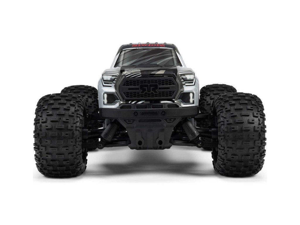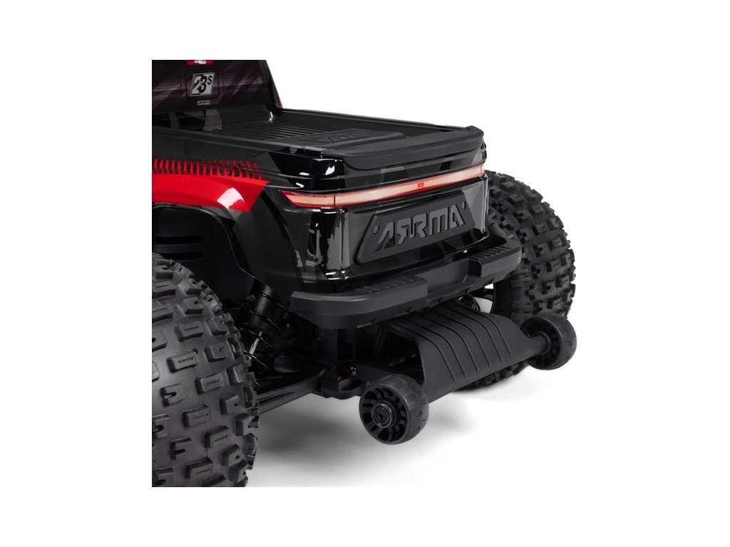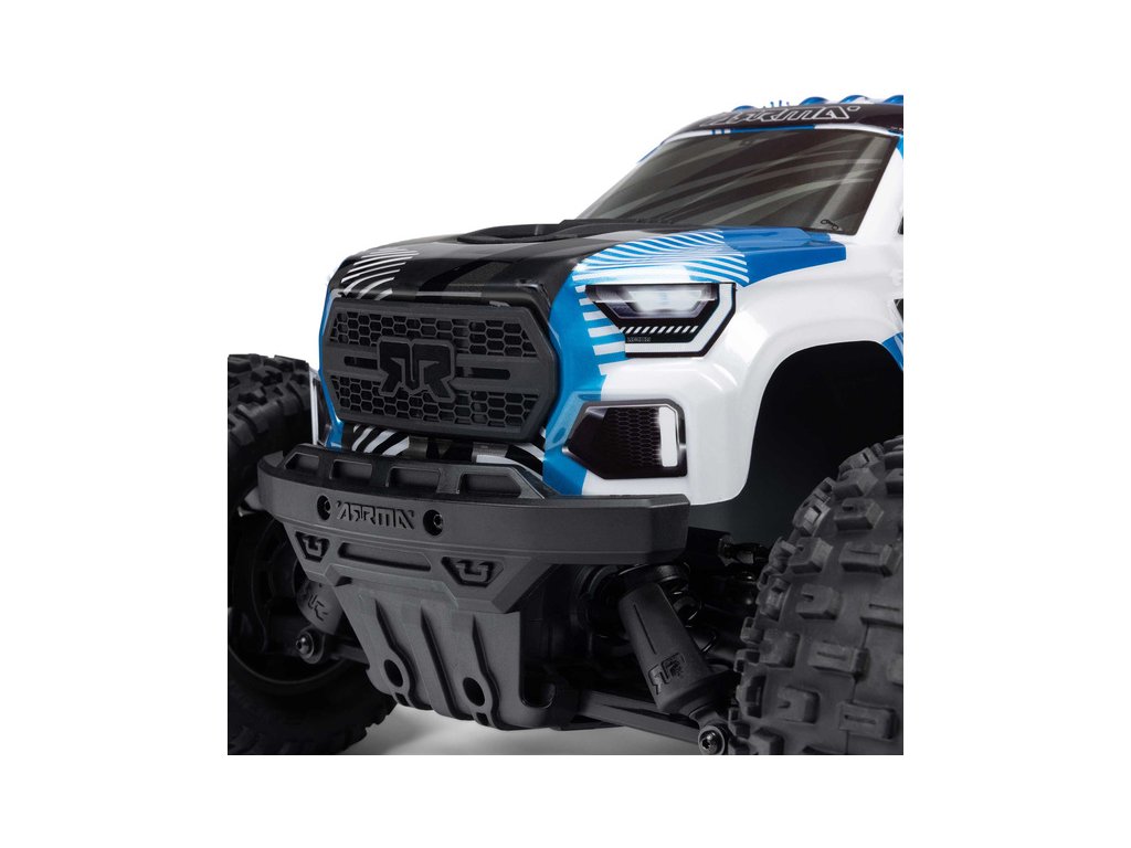Osvědčená odolná platforma ARRMA® 4X4, vám umožní jezdit vysokou rychlostí téměř v jakémkoli prostředí - v terénu, na šotolině a trávě, na parkovištích i po zpevněných a asfaltových površích. Odolnost šasí vychází ze silného kompozitového podvozku, s prodlouženou výškou chráničů nečistot. Použité kovové převody jsou dostatečně odolné pro střídavý pohon. Výkon je distribuován na jednotlivá kola pomocí přední, zadního a středového diferenciálu. Maximální trakci zajišťují osvědčené pneumatiky dBoots. Vysílač Spektrum SLT poskytuje bezpečný provoz bez výpadků, pro bezstarostnou jízdu jsou na modelu použity voděodolné* komponenty - regulátor s přijímače Spektrum 2-v-1 80A a servo řízení Spektrum S662 s vysokým točivým momentem a kovovými převody.