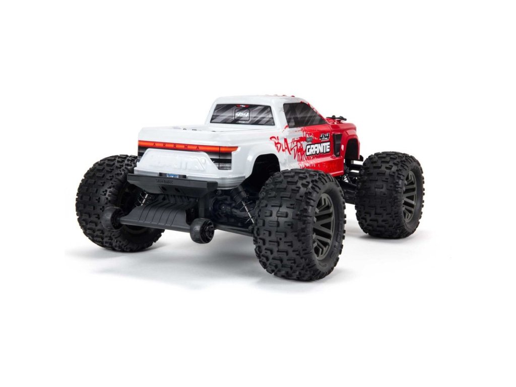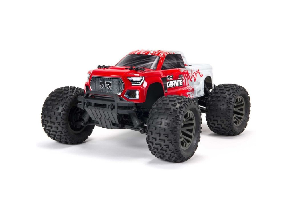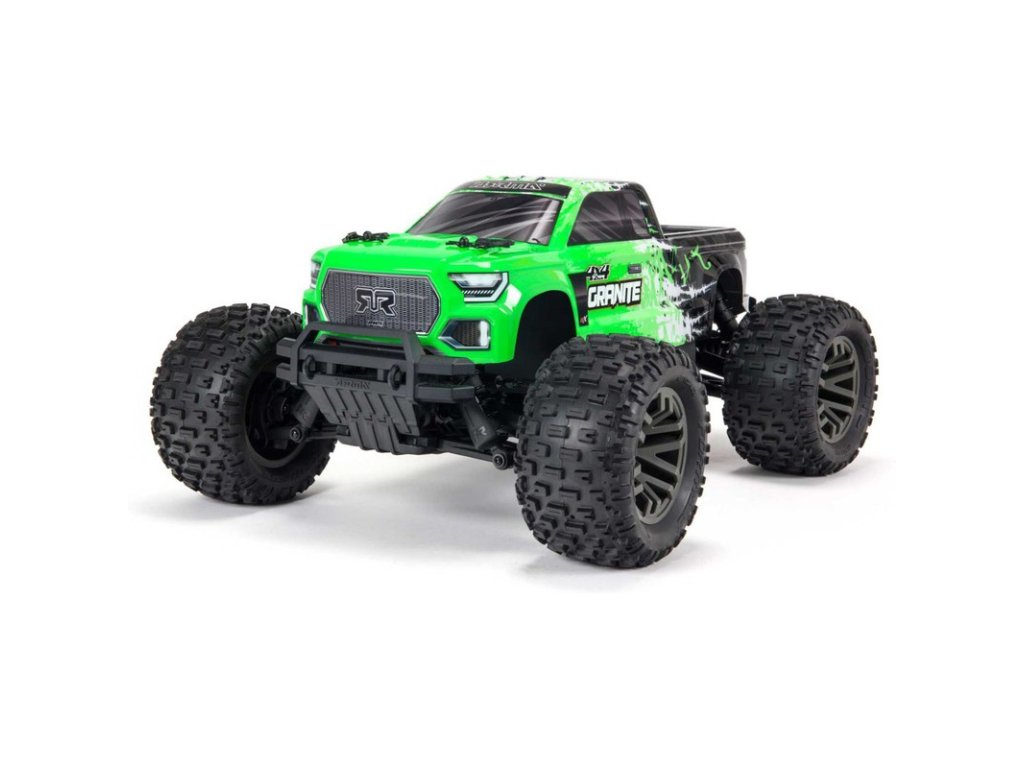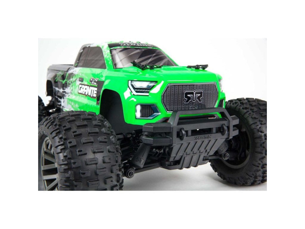 RC model auta Granite 4x4 překvapí svou houževnatostí a odolností. Má pevnější podvozek, výkonnější servojízdy bez únavy a má volant s pěnovou obručí pro přesné ovládání. Noví řidiči si mohou nastavit limit plynu na 50% nebo 75%, dokud nebudou připraveni využít plný potenciál rychlosti. Vysílač SLT3™ je kompatibilní s přijímači Tactic® SLT™ pro provozování starších aut Arrma RTR a má k dispozici třetí kanál pro ovládání volitelných funkcí, jako jsou světla a navijáky. Monster truck s pohonem všech kol je vybaven výkonným střídavým motorem BLX 3200KV, který dodává modelu nekončící příval síly. Aby se RC model při přidání plynu nepřevrátil, je vybaven zadními kolečky wheelie. Regulátor s podporu 3S LiPo akumulátorů, poskytuje možnost výběru mezi třemi jízdními režimy, stačí si jen vybrat a začít závodit.