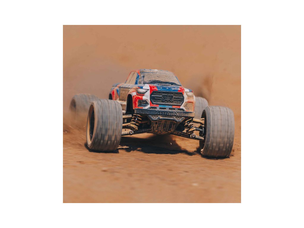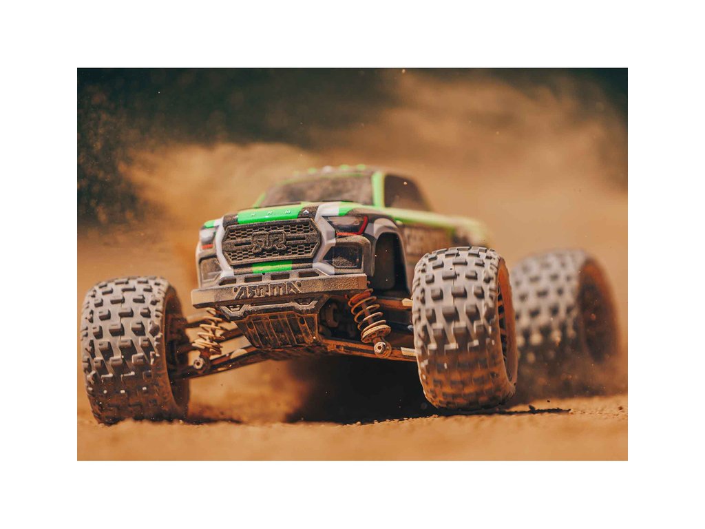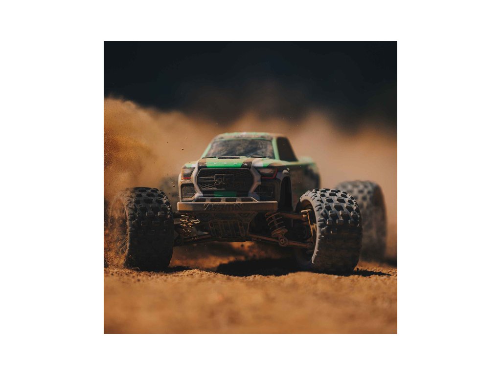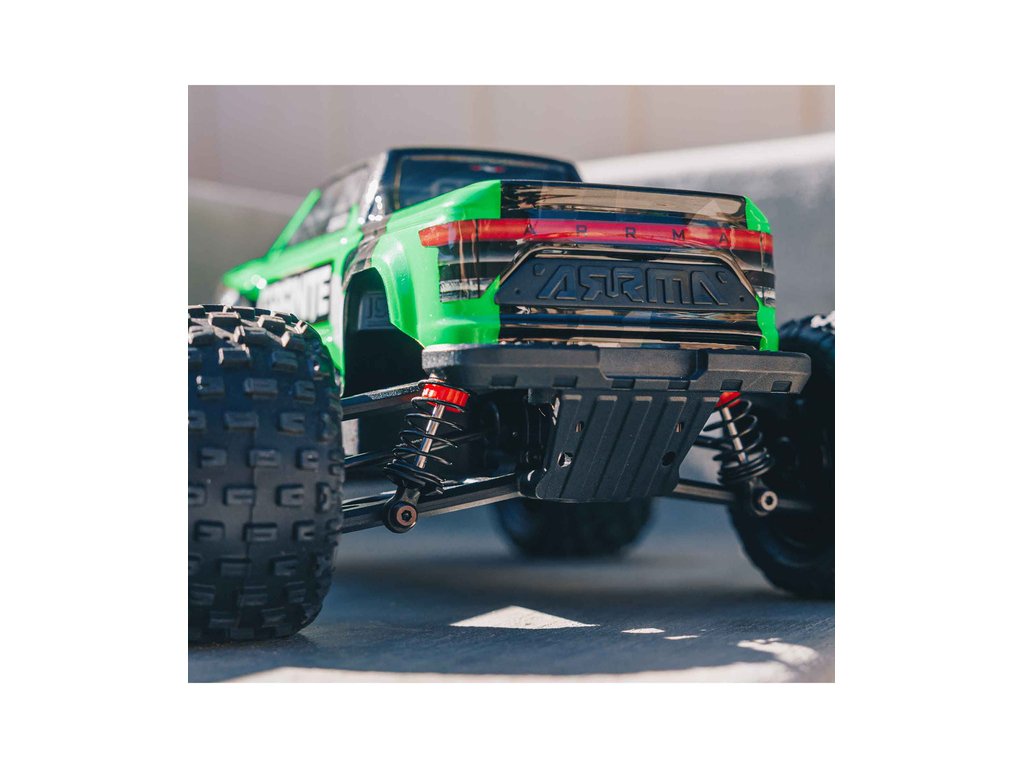 Na rozdíl od jiných výrobců, nedělá ARRMA u menších modelů žádné kompromisy. Model má inovativní bezsponkové upevnění karosérie, které udržuje karosérii bezpečně upevněnou, ale snadno se přitom sundává. Mezi jinými menšími modely aut vyčnívá silou, skvělou ovladatelností a schopnostmi, které potřebujete abyste mohli svými kaskadérskými ohromit ostatní.