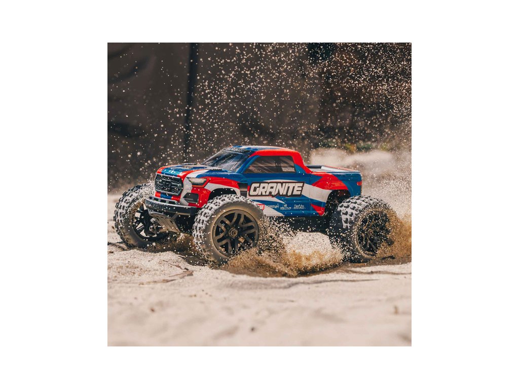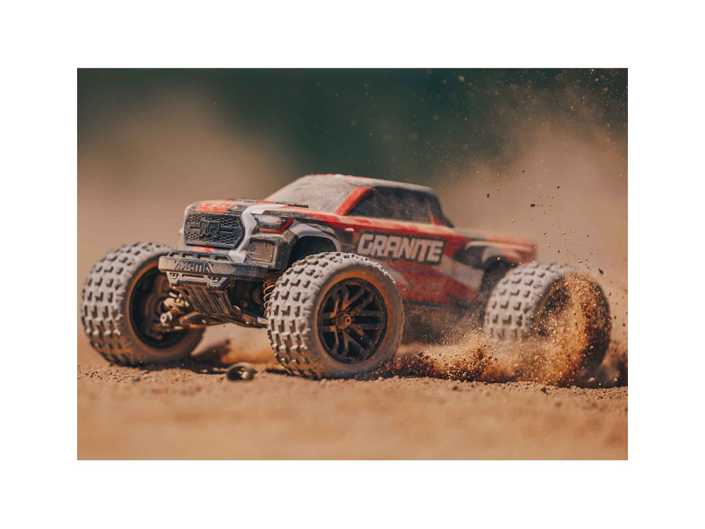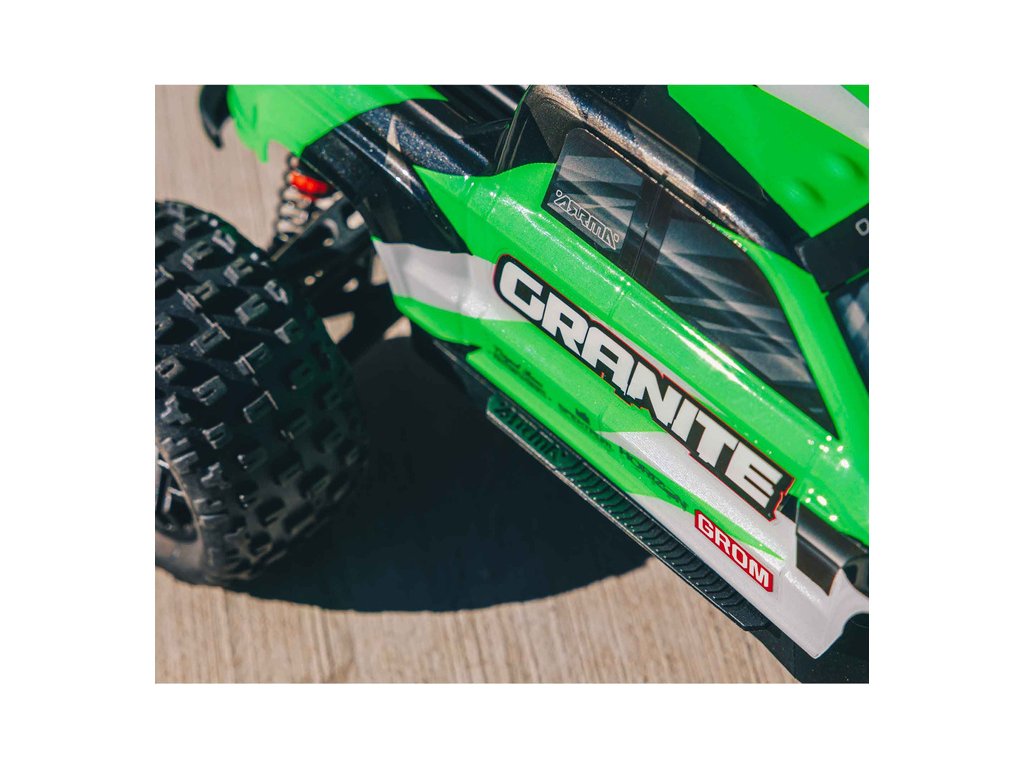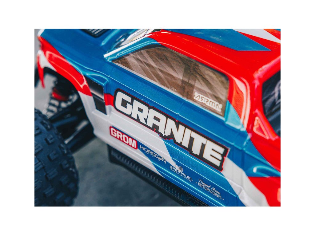 Vše co budete k provozu modelu GRANITE GROM potřebovat, je obsaženo v balení. Karoserie typu Monster Truck je profesionálně dokončena v barevných variantách podle vašeho výběru. K dispozici jsou i volitelné tuningové součásti pro vylepšení modelu GRANITE GROM. Zakoupit si můžete sadu kovové nápravy a náboje kol, sadu hliníkových tlumičů, nastavitelné táhla řízení a dvoudílnou sestavenou sadu olejem plněného diferenciálu.